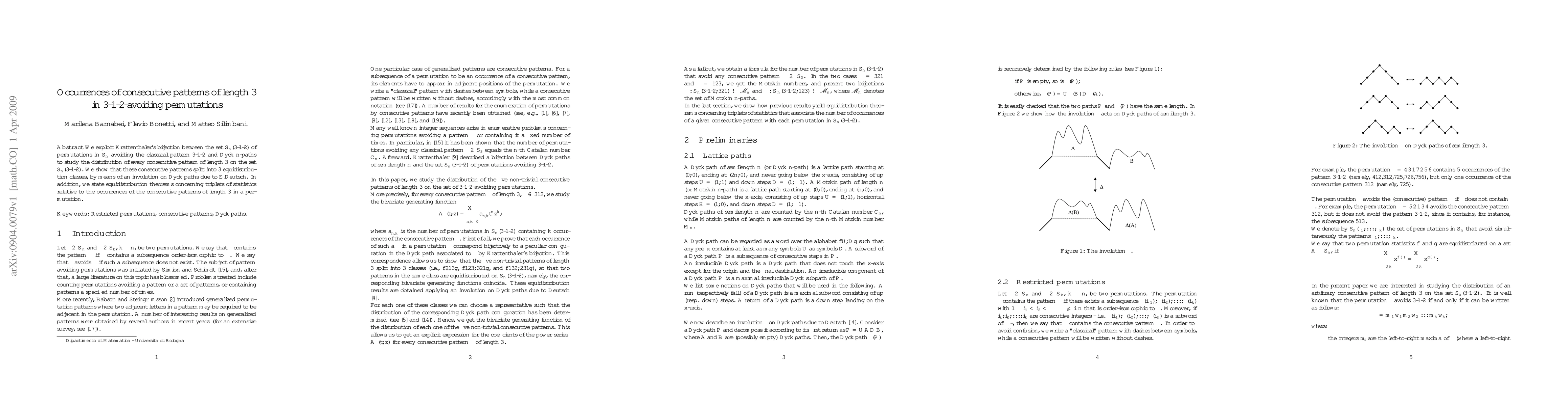 We exploit Krattenthaler's bijection between the set $S_n(3\textrm{-}1\textrm{-}2)$ of permutations in $S_n$ avoiding the classical pattern $3\textrm{-}1\textrm{-}2$ and Dyck $n$-paths to study the distribution of every consecutive pattern of length 3 on the set $S_n(3\textrm{-}1\textrm{-}2)$. We show that these consecutive patterns split into 3 equidistribution classes, by means of an involution on Dyck paths due to E.Deutsch. In addition, we state equidistribution theorems concerning triplets of statistics relative to the occurrences of the consecutive patterns of length 3 in a permutation.