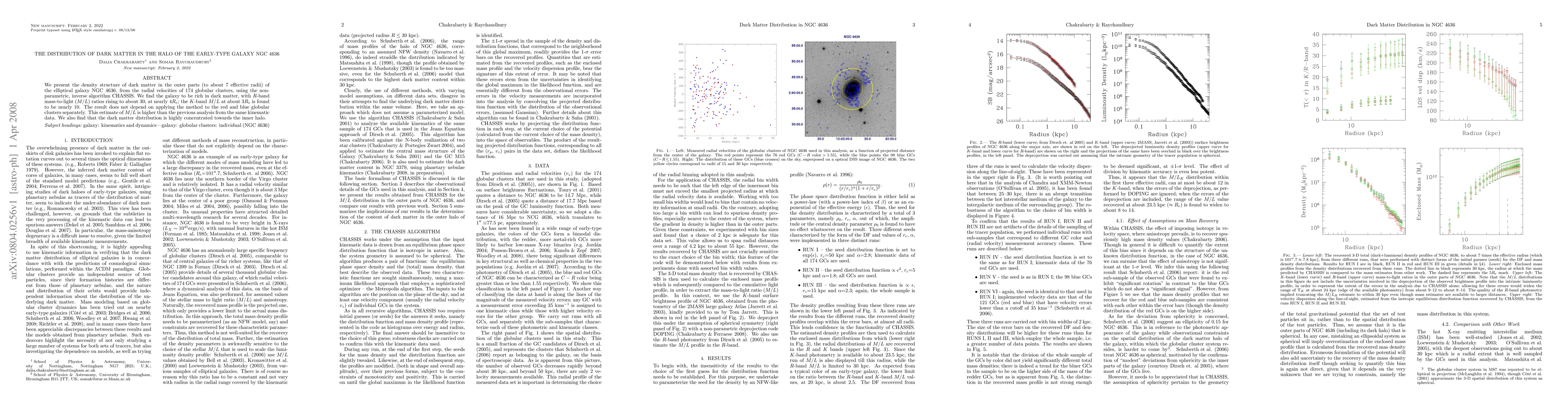 We present the density structure of dark matter in the outer parts (to about 7 effective radii) of the elliptical galaxy NGC 4636, from the radial velocities of 174 globular clusters, using the non-parametric, Bayesian algorithm CHASSIS. We find the galaxy to be rich in dark matter, with $R$-band mass-to-light ($M/L$) ratios rising to about 30, at nearly 4$R_e$; the $K$-band $M/L$ at about 3$R_e$ is found to be nearly 10. The result does not depend on applying the method to the red and blue globular clusters separately. This estimate of $M/L$ is higher than the previous analysis from the same kinematic data. We also find that the dark matter distribution is highly concentrated towards the inner halo.