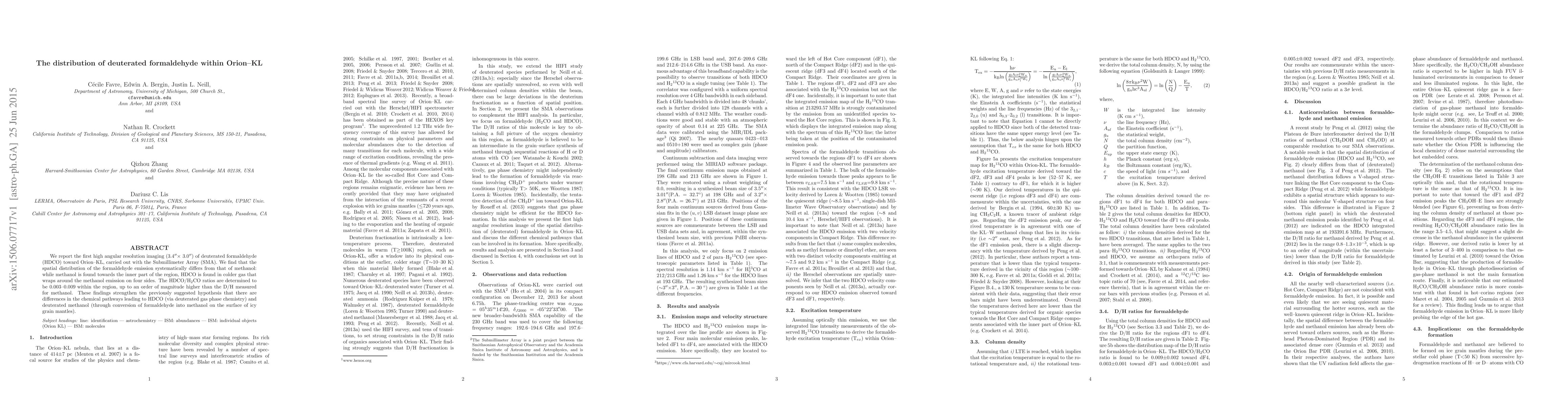 The paper presents the first high-resolution imaging of deuterated formaldehyde in Orion-KL, providing detailed spectral and spatial data on HDCO emission relative to methanol.