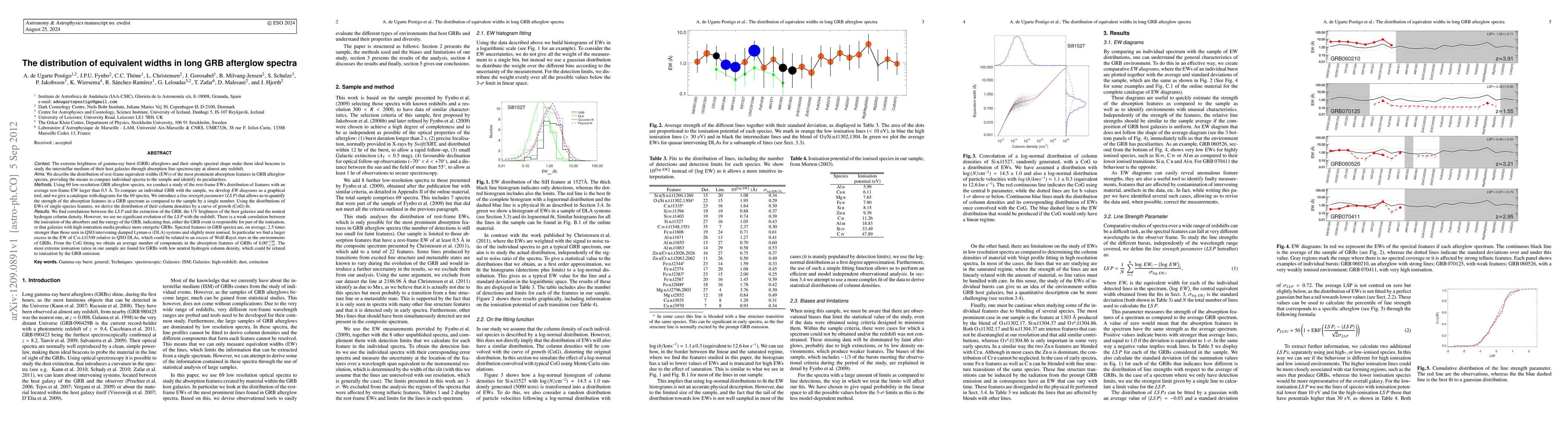 The extreme brightness of gamma-ray burst (GRB) afterglows and their simple spectral shape make them ideal beacons to study the interstellar medium of their host galaxies through absorption line spectroscopy. Using 69 low-resolution GRB afterglow spectra, we conduct a study of the rest-frame equivalent width (EW) distribution of features with an average rest-frame EW larger than 0.5 A. To compare an individual GRB with the sample, we develop EW diagrams as a graphical tool, and we give a catalogue with diagrams for the 69 spectra. We introduce a line strength parameter (LSP) that allows us to quantify the strength of the absorption features as compared to the sample by a single number. Using the distributions of EWs of single-species features, we derive the distribution of column densities by a curve of growth (CoG) fit. We find correlations between the LSP and the extinction of the GRB, the UV brightness of the host galaxies and the neutral hydrogen column density. However, we see no significant evolution of the LSP with the redshift. There is a weak correlation between the ionisation of the absorbers and the energy of the GRB, indicating that, either the GRB event is responsible for part of the ionisation, or that galaxies with high-ionisation media produce more energetic GRBs. Spectral features in GRB spectra are, on average, 2.5 times stronger than those seen in QSO intervening damped Lyman-alpha (DLA) systems and slightly more ionised. In particular we find larger excess in the EW of CIV1549 relative to QSO DLAs, which could be related to an excess of Wolf-Rayet stars in the environments of GRBs. From the CoG fitting we obtain an average number of components in the absorption features of GRBs of 6.00(-1.25,+1.00). The most extreme ionisation ratios in our sample are found for GRBs with low neutral hydrogen column density, which could be related to ionisation by the GRB emission.