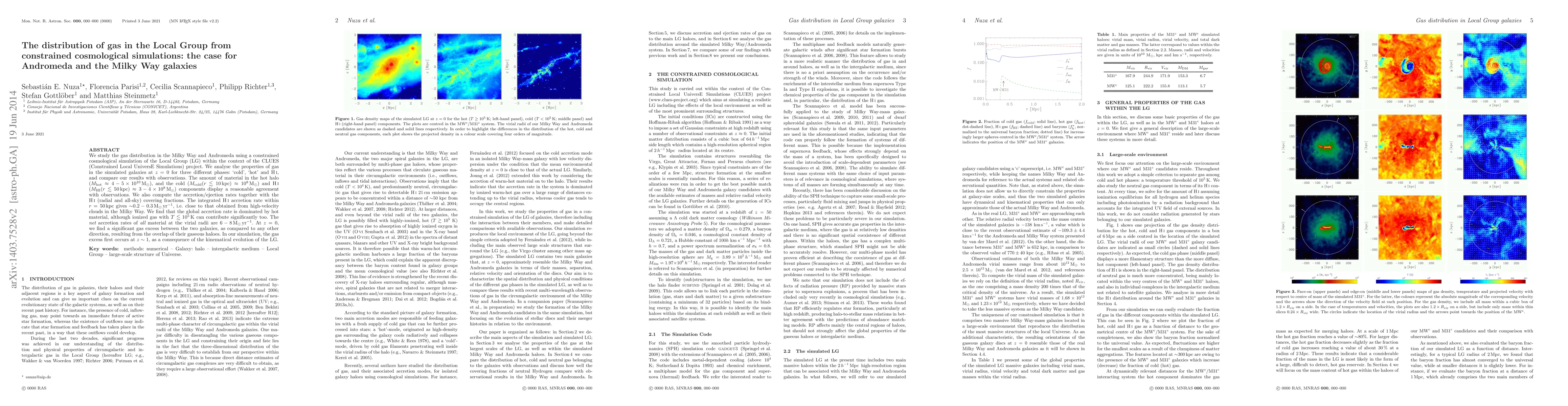 This paper examines the gas distribution in the Milky Way and Andromeda using constrained cosmological simulations, finding good agreement between simulated and observed gas masses. The study highlights significant gas accretion rates and a notable gas excess between the two galaxies at present, resulting from their overlapping gaseous haloes.