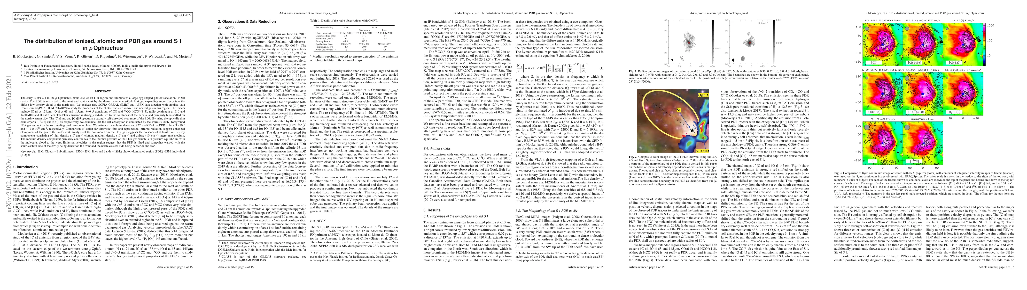 The study analyzes new SOFIA GREAT, GMRT, and APEX data along with archival data from Herschel/PACS, JCMT/HARPS to investigate the properties of photo-irradiated ionized and neutral gas around the early B star S1 in the Rho Ophiuchus cloud.
