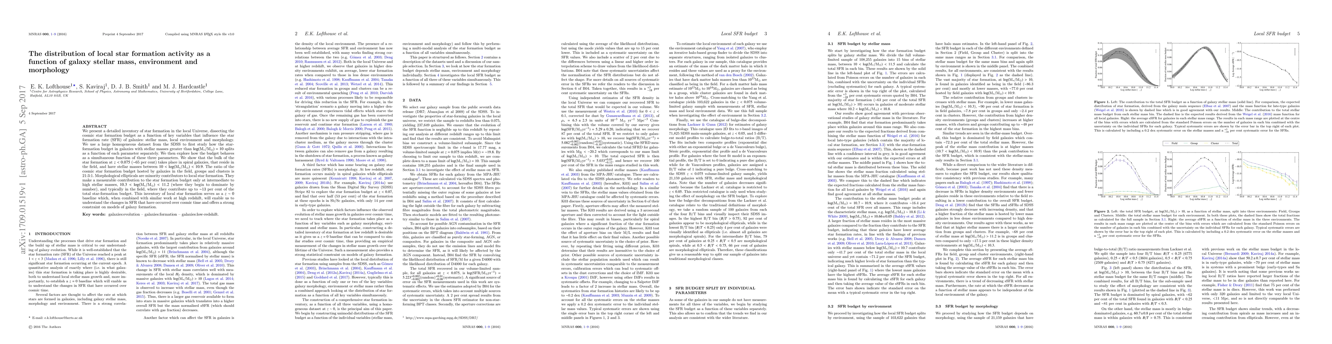 The study explores how star formation in galaxies varies by mass, environment, and morphology, finding that spiral galaxies in the field dominate local star formation, with elliptical morphologies making a smaller but increasing contribution at higher masses.
