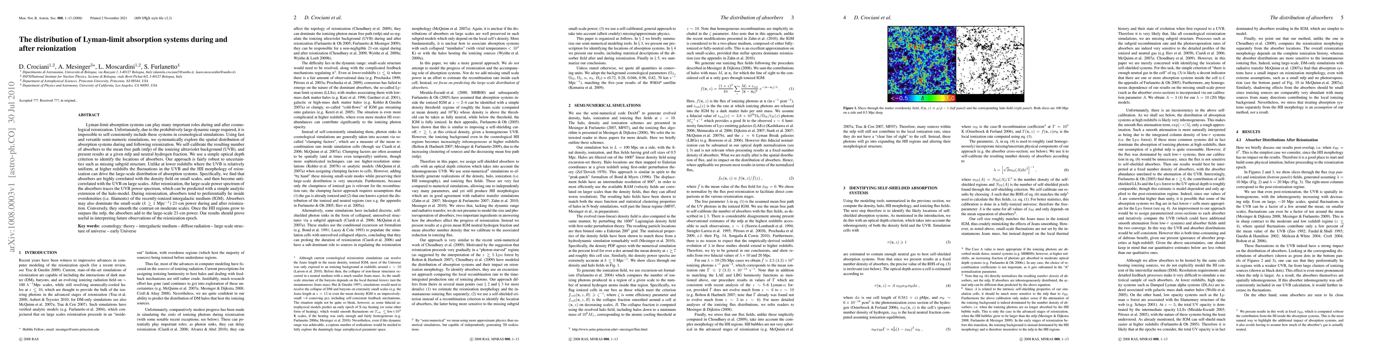This paper investigates the distribution of Lyman-limit absorption systems during and after cosmic reionization using semi-numeric simulations. The study finds that absorbers correlate with density fields on small scales and anti-correlate with the ultraviolet background on large scales, providing insights into the 21-cm power spectrum and aiding future reionization epoch observations.