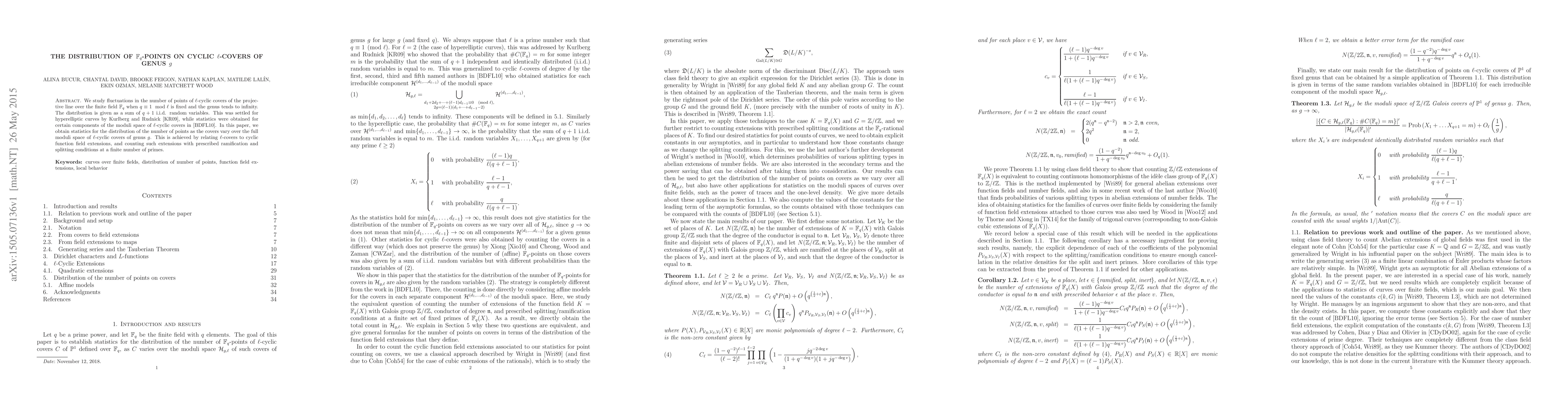 This paper investigates the distribution of $\mathbb{F}_q$-points on cyclic $\ell$-covers of genus $g$ as $g$ tends to infinity, showing it follows a sum of $q+1$ i.i.d. random variables. It extends previous results for hyperelliptic curves and certain moduli components to the full moduli space of $\ell$-cyclic covers.