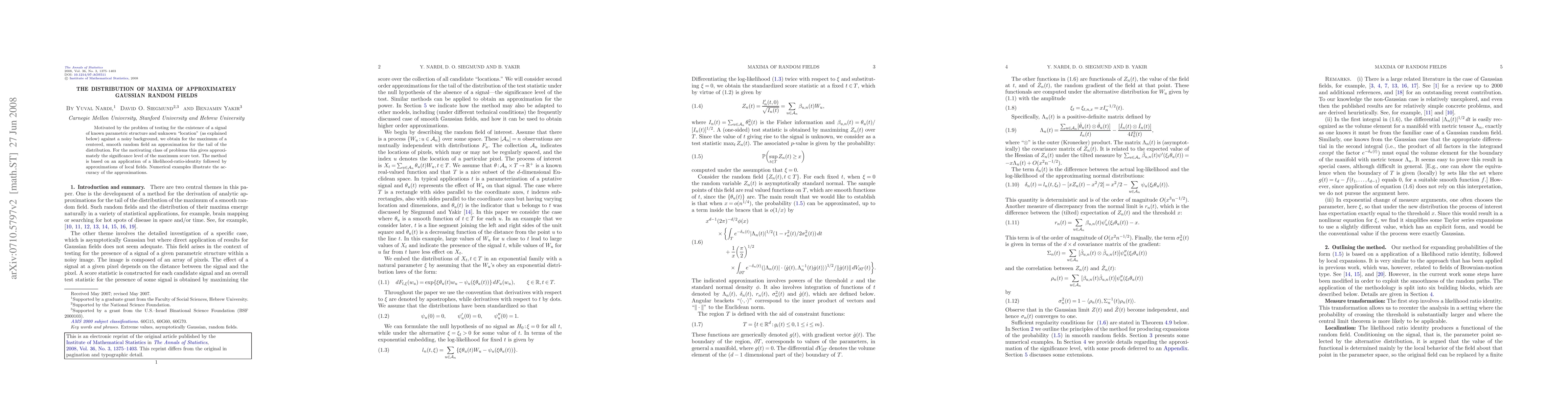 Researchers developed an approximation method for finding the distribution of maxima in Gaussian random fields, with applications to signal detection and hypothesis testing. The method provides a significant improvement in accuracy compared to existing methods.