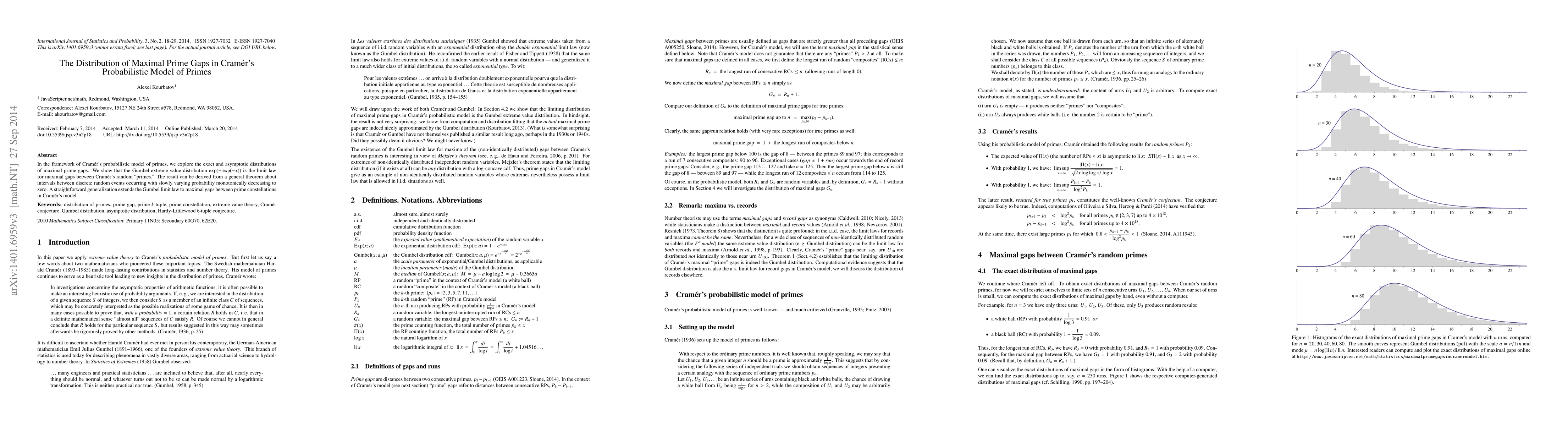 The study explores maximal prime gaps in Cramer's probabilistic model of primes, utilizing a general theorem on intervals between discrete random events with slowly varying probabilities.