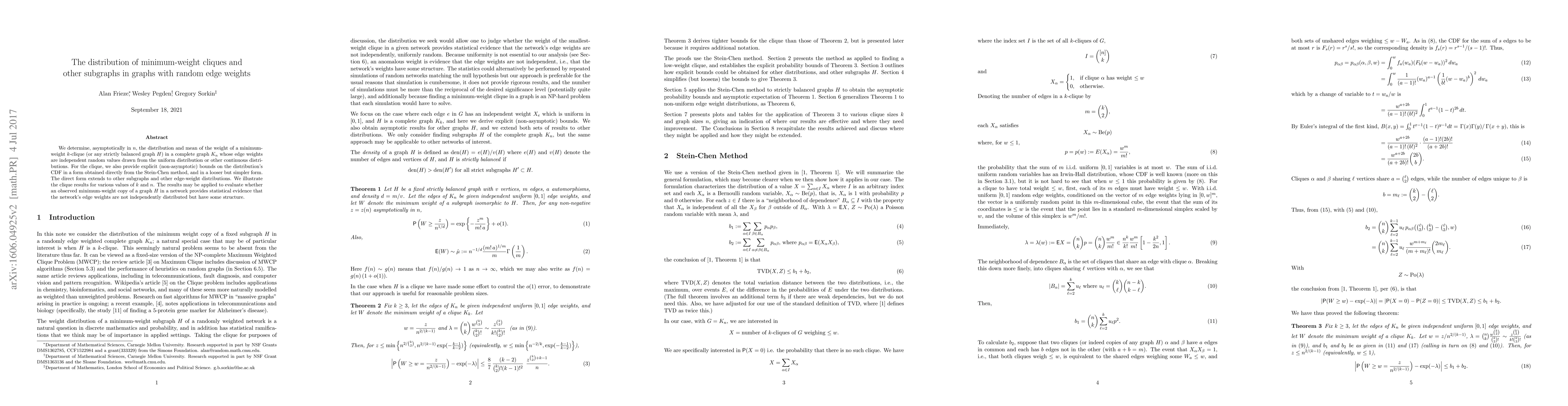 This paper investigates how to analyze the distribution of minimum-weight cliques in random graphs with edge weights, providing insights for understanding network structure and statistical evidence.