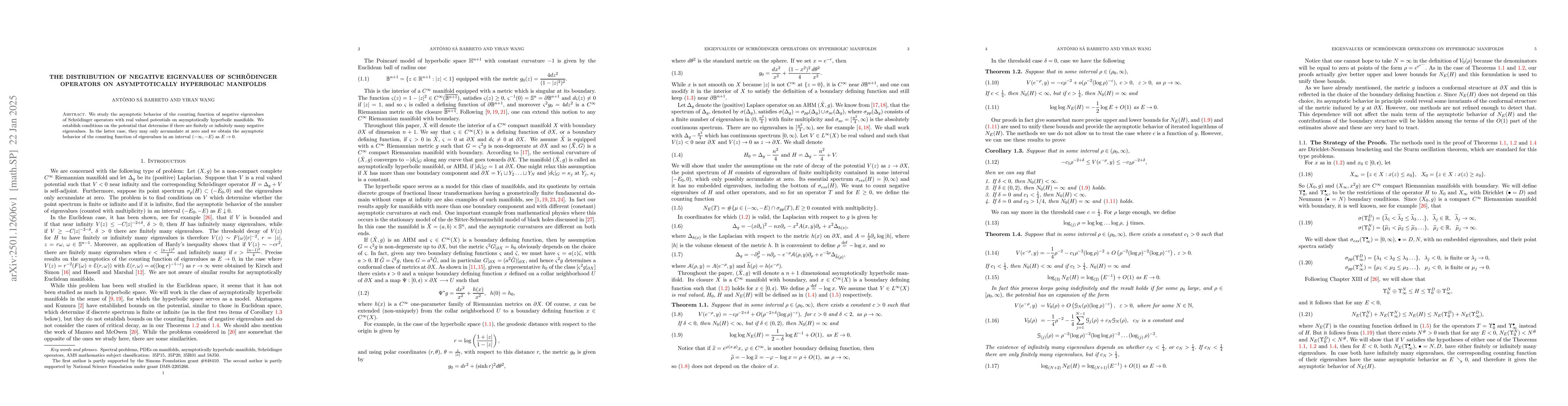 This paper investigates the asymptotic behavior of negative eigenvalues for Schrödinger operators on asymptotically hyperbolic manifolds, establishing conditions on potentials that determine the finiteness and distribution of these eigenvalues, particularly as the eigenvalue approaches zero.