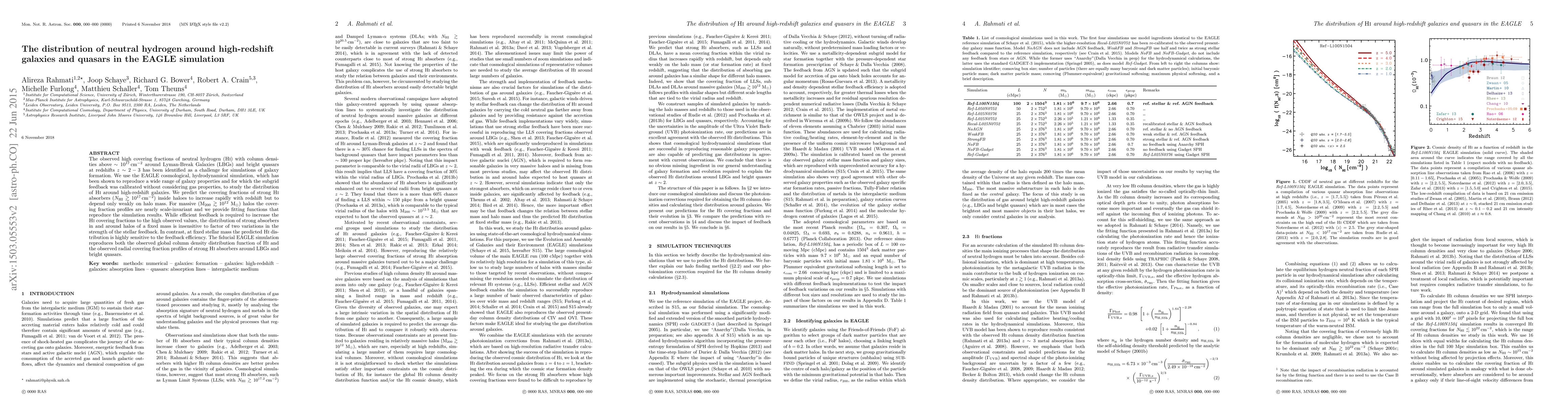 The EAGLE simulation predicts that the covering fractions of strong neutral hydrogen absorbers around high-redshift galaxies and quasars increase rapidly with redshift and are nearly scale-invariant for massive halos. The simulation's results are sensitive to feedback efficiency but reproduce observed HI distributions.