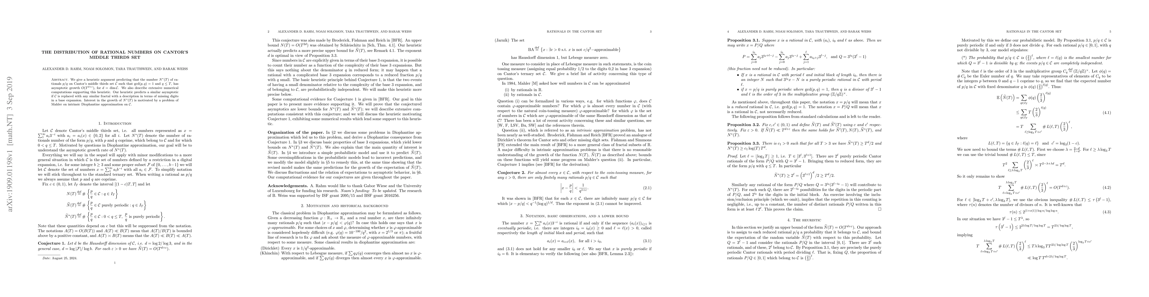 Researchers found a heuristic to estimate the number of rational numbers on Cantor's middle thirds set with a fixed denominator bound, supported by extensive numerical computations.