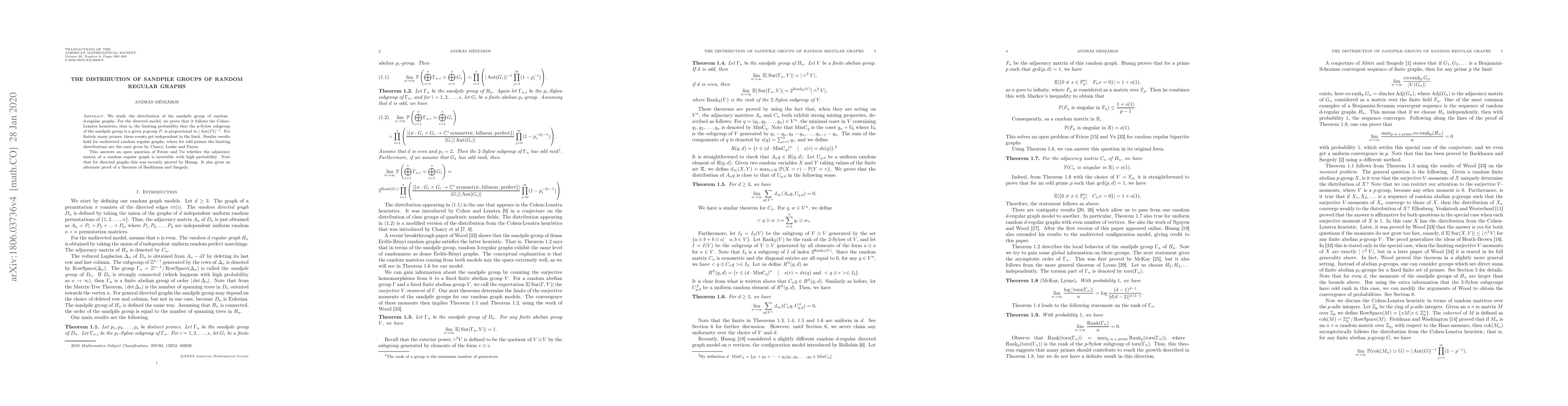 This paper investigates the sandpile group distribution in random d-regular graphs, showing that it follows the Cohen-Lenstra heuristics for directed graphs and similar results for undirected graphs. It answers an open question about the invertibility of the adjacency matrix in random regular graphs.
