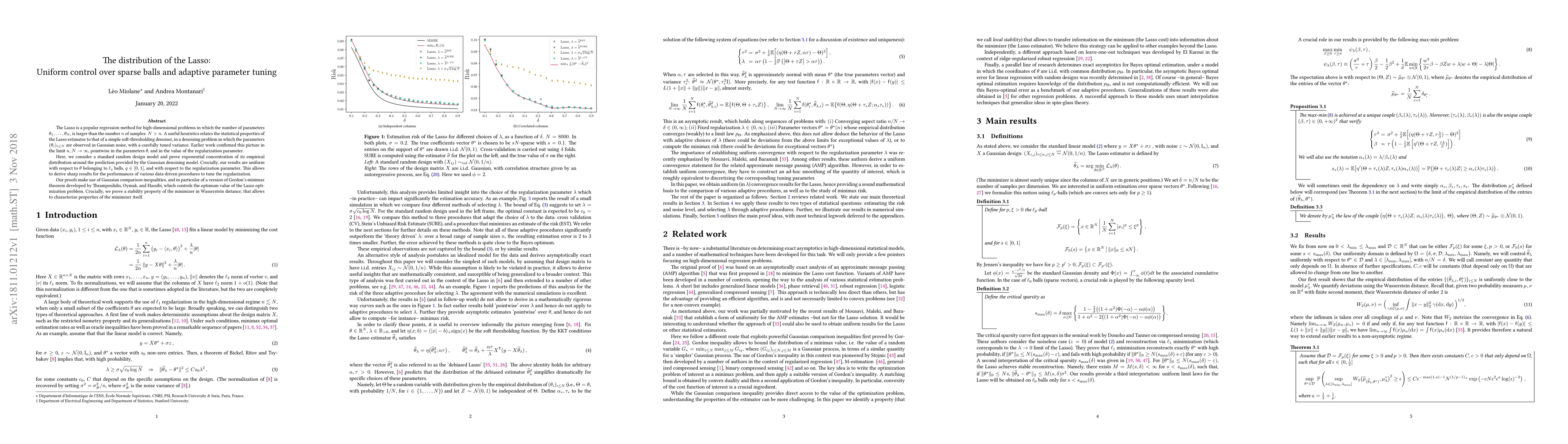 This paper proves that the Lasso regression method has a uniform distribution of its estimator across sparse balls and adaptive parameter tuning, allowing for sharp results on data-driven procedures to tune regularization parameters.
