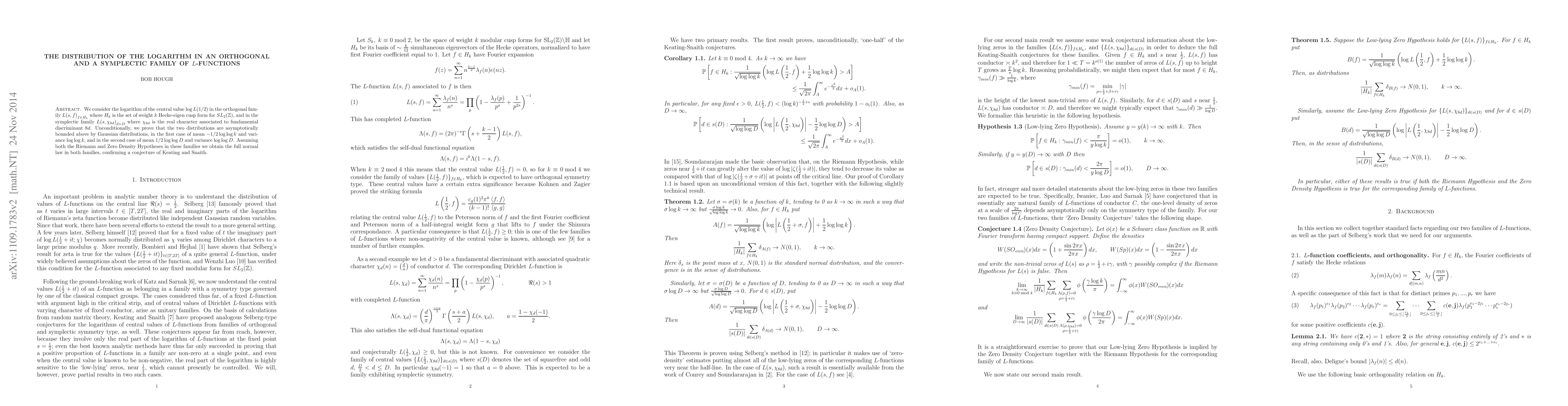 We consider the logarithm of the central value $\log L(1/2)$ in the orthogonal family ${L(s,f)}_{f \in H_k}$ where $H_k$ is the set of weight $k$ Hecke-eigen cusp form for $SL_2(\mathbb{Z})$, and in the symplectic family ${L(s,\chi_{8d})}_{d \asymp D}$ where $\chi_{8d}$ is the real character associated to fundamental discriminant $8d$. Unconditionally, we prove that the two distributions are asymptotically bounded above by Gaussian distributions, in the first case of mean $-\frac{1}{2} \log \log k$ and variance $\log \log k$, and in the second case of mean $\frac{1}{2}\log \log D$ and variance $\log \log D$. Assuming both the Riemann and Zero Density Hypotheses in these families we obtain the full normal law in both families, confirming a conjecture of Keating and Snaith.