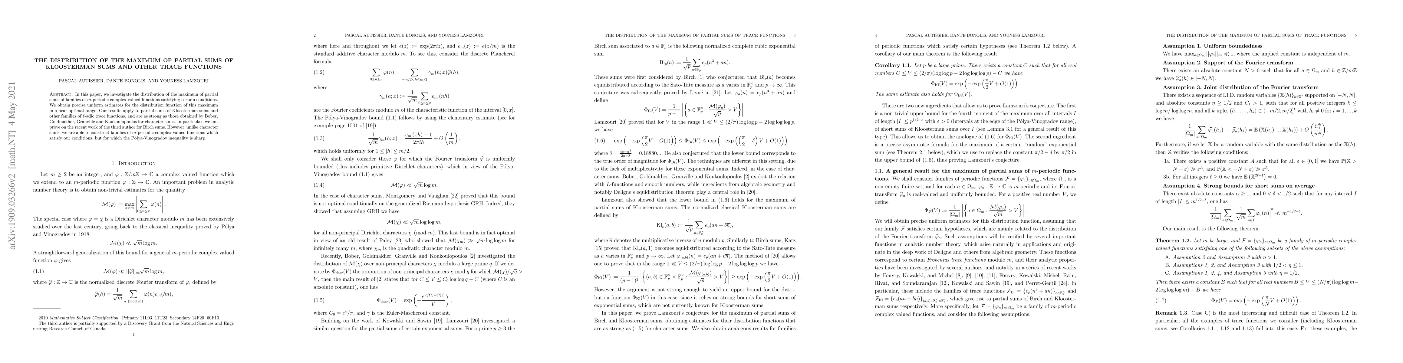 This paper studies the distribution of the maximum of partial sums for $m$-periodic complex functions, achieving near-optimal uniform estimates. It applies to Kloosterman sums and $\ell$-adic trace functions, surpassing previous results for Birch sums while constructing specific function families where the Pólya-Vinogradov inequality holds true.