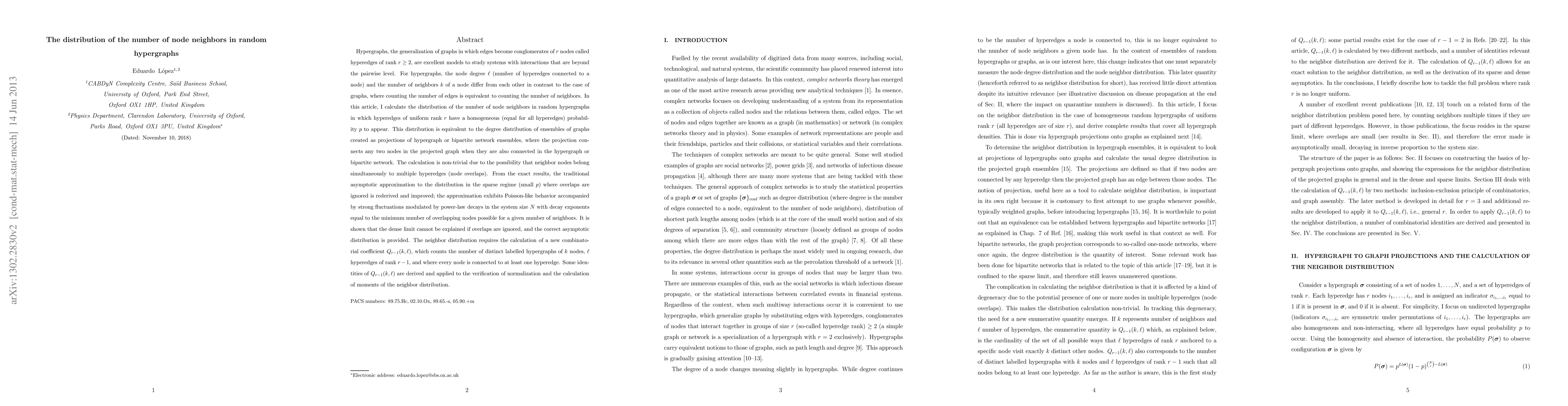 A study on random hypergraphs reveals a distribution of node neighbors that exhibits Poisson-like behavior with strong fluctuations modulated by power-law decays, which improves upon traditional sparse asymptotic approximations.
