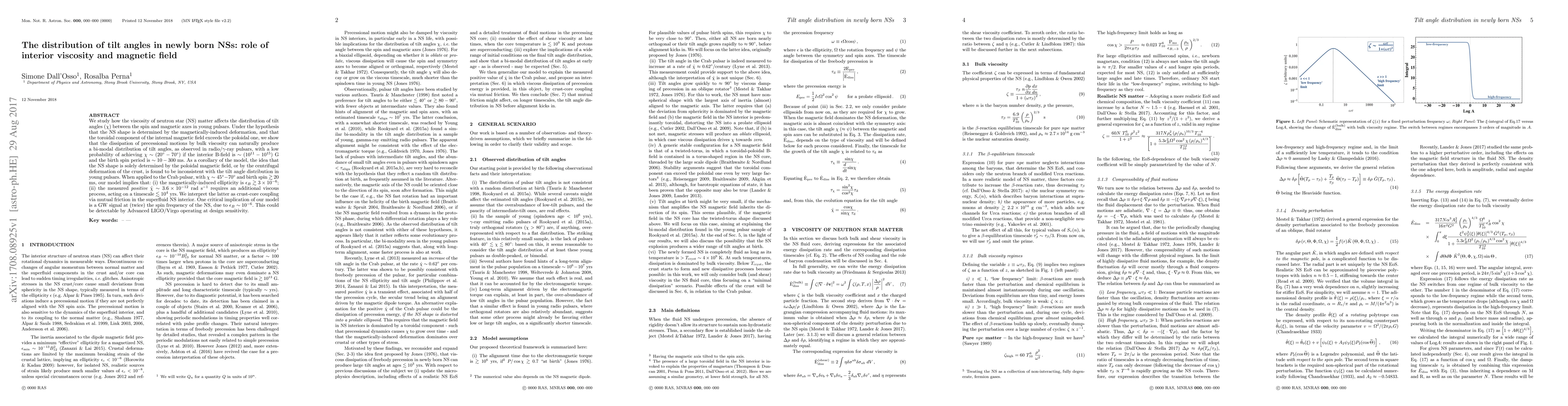 We study how the viscosity of neutron star (NS) matter affects the distribution of tilt angles ($\chi$) between the spin and magnetic axes in young pulsars. Under the hypothesis that the NS shape is determined by the magnetically-induced deformation, and that the toroidal component of the internal magnetic field exceeds the poloidal one, we show that the dissipation of precessional motions by bulk viscosity can naturally produce a bi-modal distribution of tilt angles, as observed in radio/$\gamma$-ray pulsars, with a low probability of achieving $\chi \sim (20^\circ - 70^\circ)$ if the interior B-field is $\sim (10^{11} - 10^{15})$~G and the birth spin period is $\sim 10 - 300$~ms. As a corollary of the model, the idea that the NS shape is solely determined by the poloidal magnetic field, or by the centrifugal deformation of the crust, is found to be inconsistent with the tilt angle distribution in young pulsars. When applied to the Crab pulsar, with $\chi \sim 45^\circ - 70^\circ$ and birth spin $\sim$ 20 ms, our model implies that: (i) the magnetically-induced ellipticity is $\epsilon_B \gtrsim 3 \times 10^{-6}$; (ii) the measured positive $\dot{\chi} \sim 3.6 \times 10^{-12}$ rad s$^{-1}$ requires an additional viscous process, acting on a timescale $\lesssim 10^4$ yrs. We interpret the latter as crust-core coupling via mutual friction in the superfluid NS interior. One critical implication of our model is a GW signal at (twice) the spin frequency of the NS, due to $\epsilon_B \sim 10^{-6}$. This could be detectable by Advanced LIGO/Virgo operating at design sensitivity.