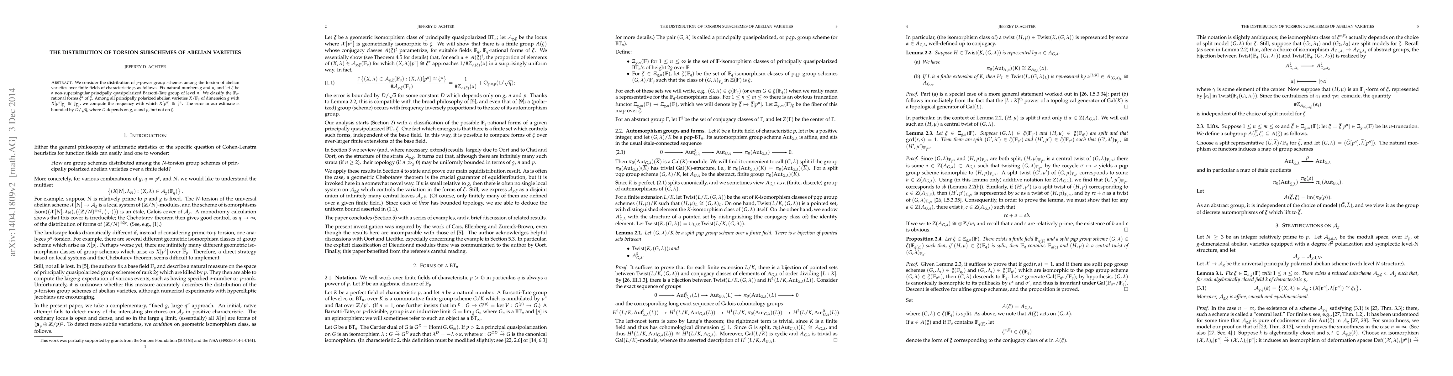 We consider the distribution of p-power group schemes among the torsion of abelian varieties over finite fields of characteristic p, as follows. Fix natural numbers g and n, and let $\xi$ be a non-supersingular principally quasipolarized Barsotti-Tate group of level n. We classify the F_q-rational forms $\xi^\alpha$ of $\xi$. Among all principally polarized abelian varieties X/F_q of dimension g with p^n-torsion geometrically isomorphic to \xi, we compute the frequency with which X[p^n] is isomorphic to $\xi^\alpha$. The error in our estimate is bounded by $D/\sqrt{q}$ where D depends on g, n and p, but not on $\xi$.