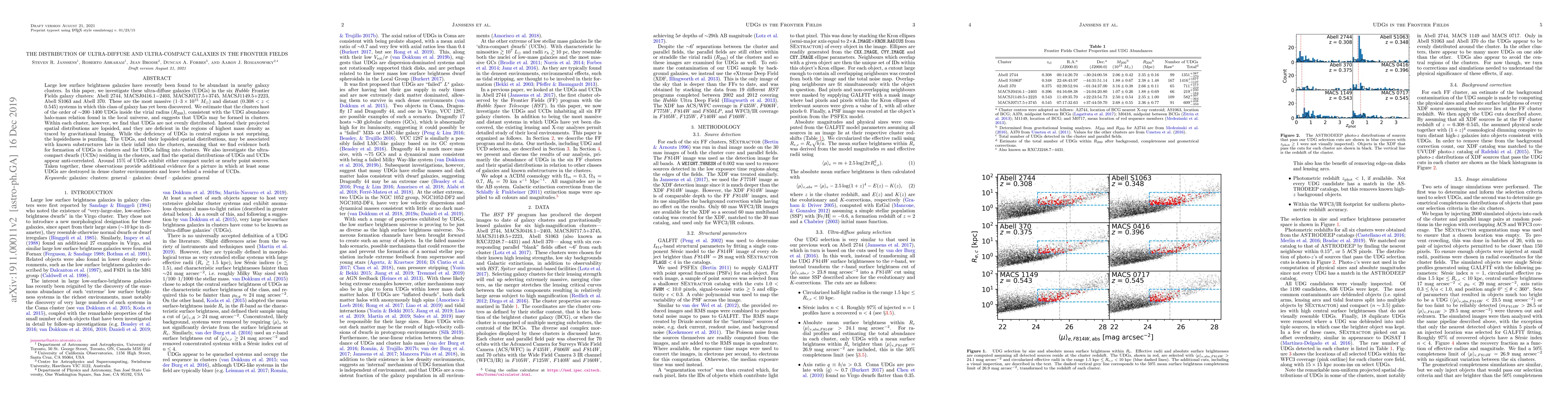 This paper investigates ultra-diffuse galaxies (UDGs) in six massive Frontier Fields galaxy clusters, finding that UDGs are abundant and not evenly distributed, exhibiting lopsided spatial distributions. The study suggests UDGs form in clusters and may be destroyed, leaving behind ultra-compact dwarfs (UCDs).