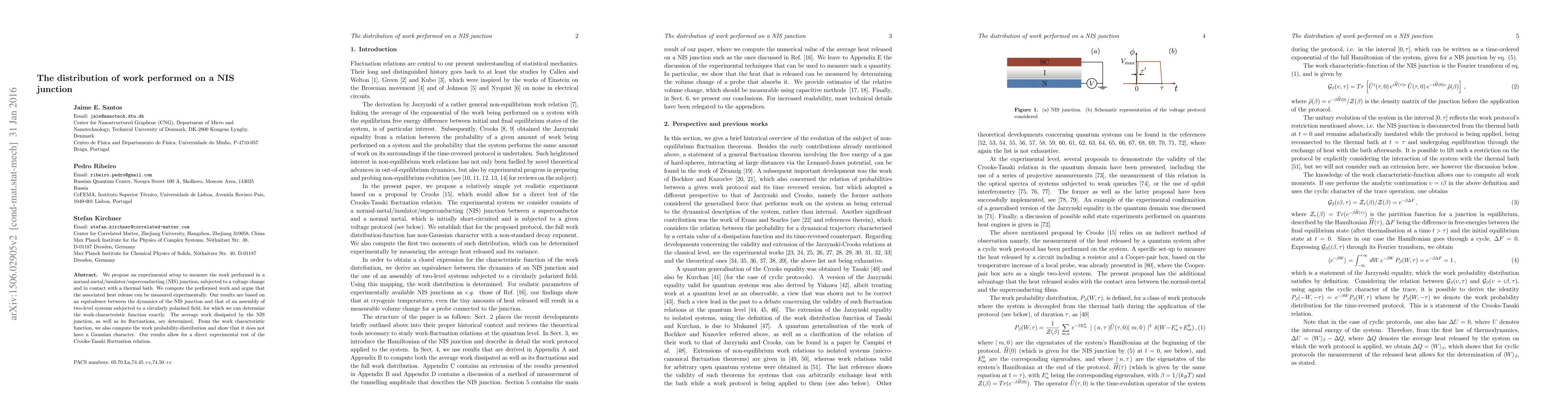 Researchers developed a method to measure work performed in NIS junctions, finding that it doesn't follow a Gaussian distribution and can be directly tested experimentally.