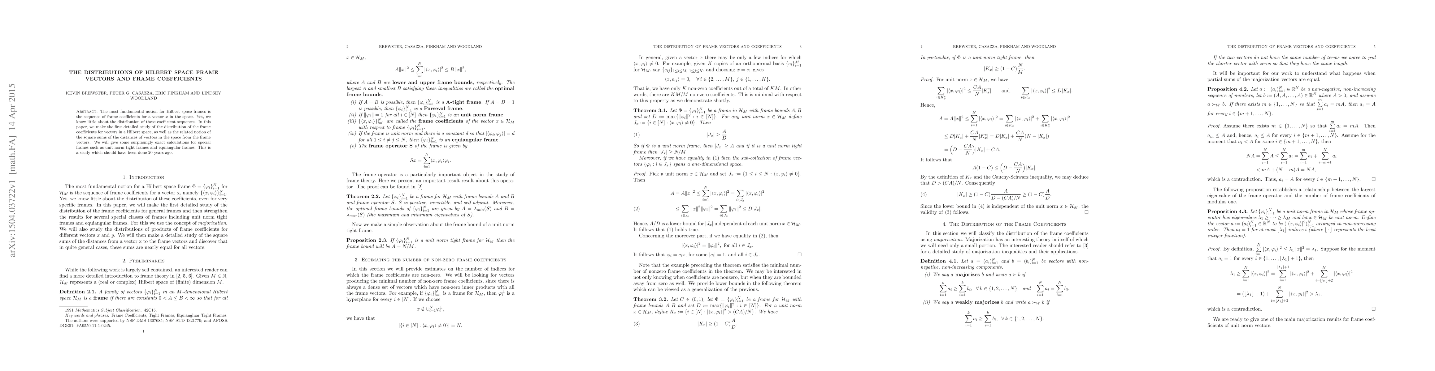 This paper investigates the distribution of frame coefficients for vectors in Hilbert space and the square sums of distances from frame vectors, providing exact calculations for special frames like unit norm tight frames and equiangular frames. This foundational study aims to fill a 20-year gap in understanding these distributions.