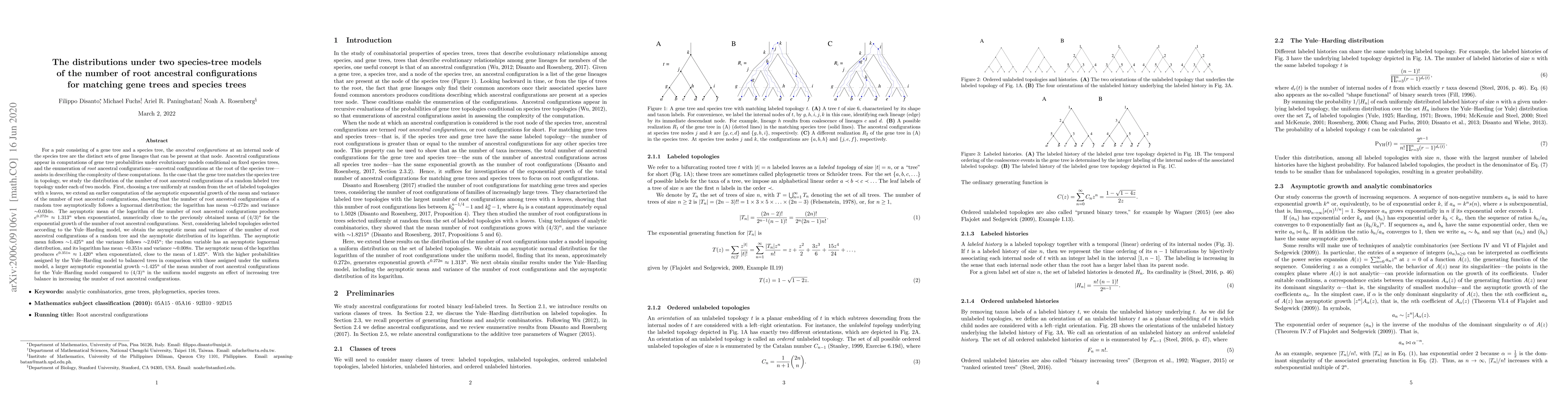 This paper investigates the distribution of root ancestral configurations for gene trees that match the species tree topology under two species-tree models, highlighting the complexity of gene tree probability computations. The study focuses on enumerating these configurations to better understand their impact on evolutionary model calculations.