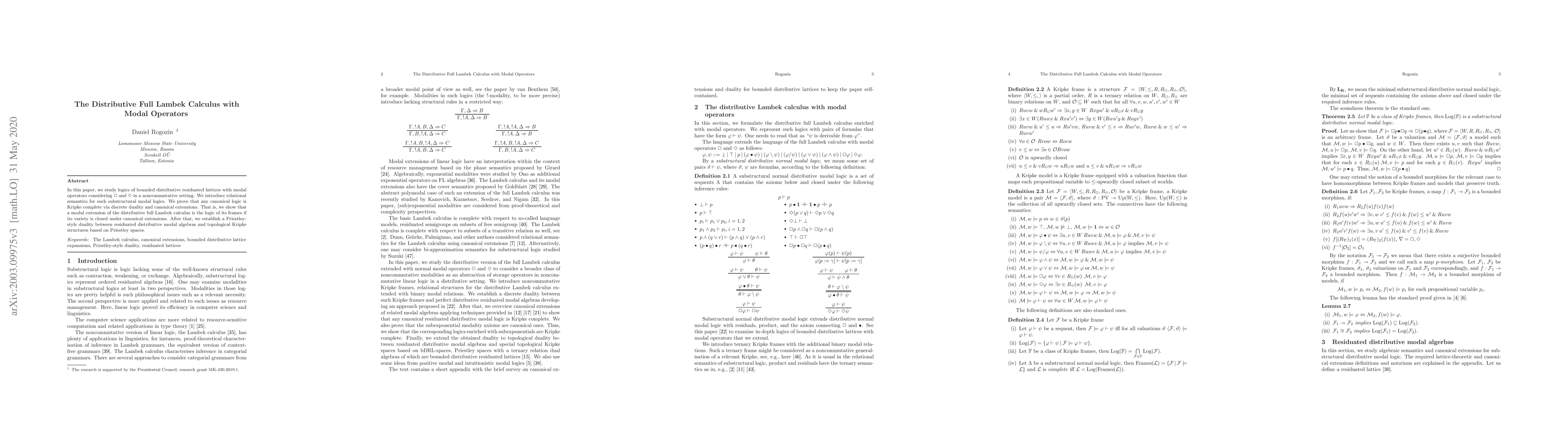 The paper explores bounded distributive residuated lattices with modal operators within a noncommutative framework, introducing relational semantics and proving Kripke completeness for canonical logics. It establishes a Priestley-style duality between residuated distributive modal algebras and topological Kripke structures.