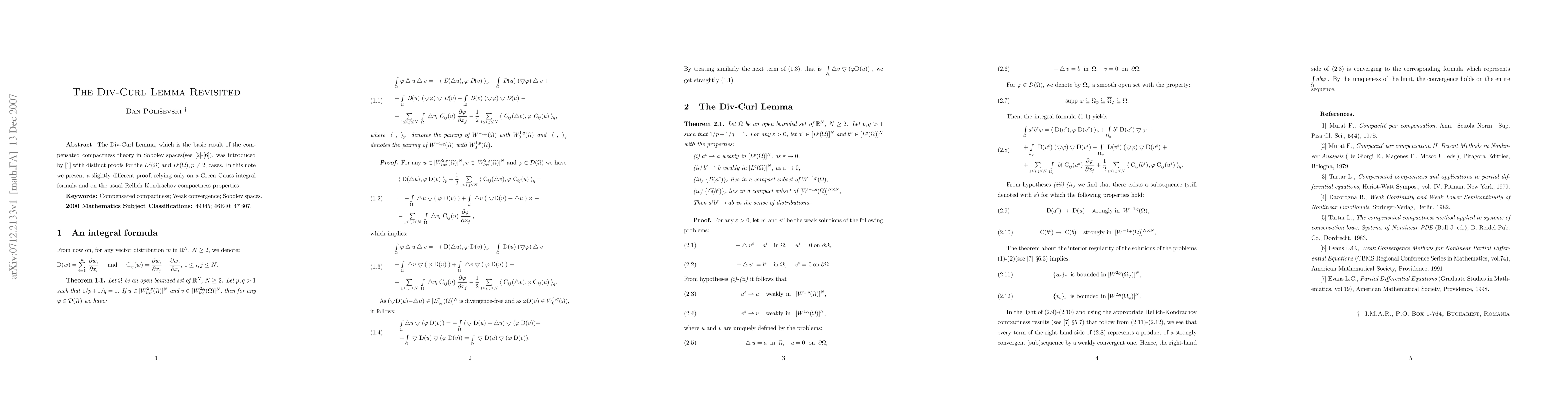 This paper revisits the Div-Curl Lemma, offering a novel proof that leverages the Green-Gauss integral formula and Rellich-Kondrachov compactness properties, streamlining the original proofs by F. Murat (1978).