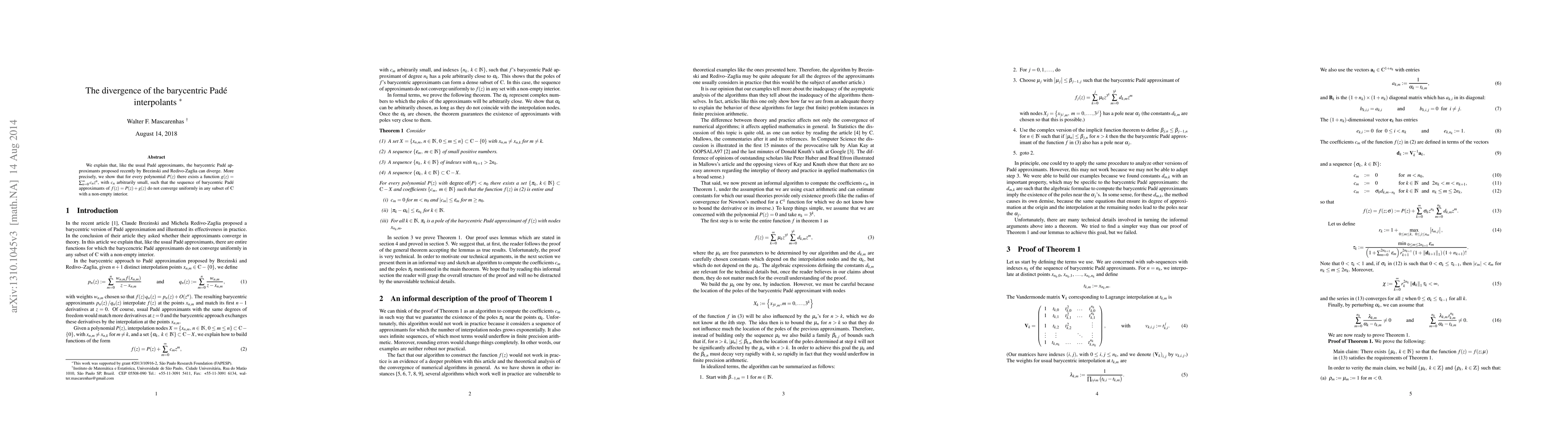This paper demonstrates that barycentric Padé approximants, similar to traditional Padé approximants, can diverge. It proves that for any polynomial P, there exists a power series S with tiny coefficients such that the sequence of barycentric Padé approximants of P + S fails to converge uniformly in any subset of the complex plane with a non-empty interior.