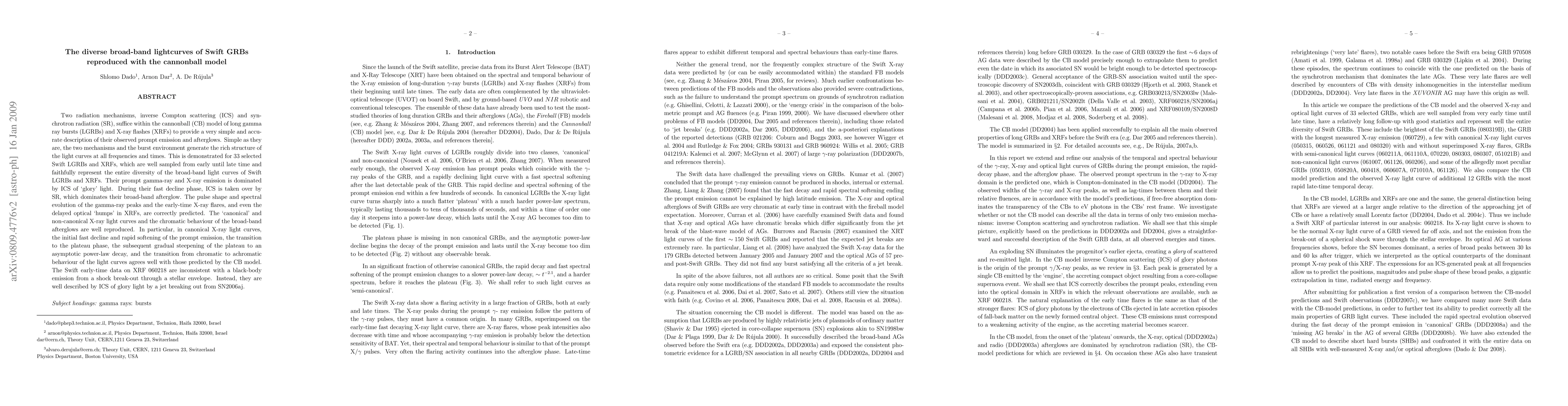 Two radiation mechanisms, inverse Compton scattering (ICS) and synchrotron radiation (SR), suffice within the cannonball (CB) model of long gamma ray bursts (LGRBs) and X-ray flashes (XRFs) to provide a very simple and accurate description of their observed prompt emission and afterglows. Simple as they are, the two mechanisms and the burst environment generate the rich structure of the light curves at all frequencies and times. This is demonstrated for 33 selected Swift LGRBs and XRFs, which are well sampled from early until late time and faithfully represent the entire diversity of the broad-band light curves of Swift LGRBs and XRFs. Their prompt gamma-ray and X-ray emission is dominated by ICS of `glory' light. During their fast decline phase, ICS is taken over by SR, which dominates their broad-band afterglow. The pulse shape and spectral evolution of the gamma-ray peaks and the early-time X-ray flares, and even the delayed optical `humps' in XRFs, are correctly predicted. The `canonical' and non-canonical X-ray light curves and the chromatic behaviour of the broad-band afterglows are well reproduced. In particular, in canonical X-ray light curves, the initial fast decline and rapid softening of the prompt emission, the transition to the plateau phase, the subsequent gradual steepening of the plateau to an asymptotic power-law decay, and the transition from chromatic to achromatic behaviour of the light curves agrees well with those predicted by the CB model. The Swift early-time data on XRF 060218 are inconsistent with a black-body emission from a shock break-out through a stellar envelope. Instead, they are well described by ICS of glory light by a jet breaking out from SN2006aj.