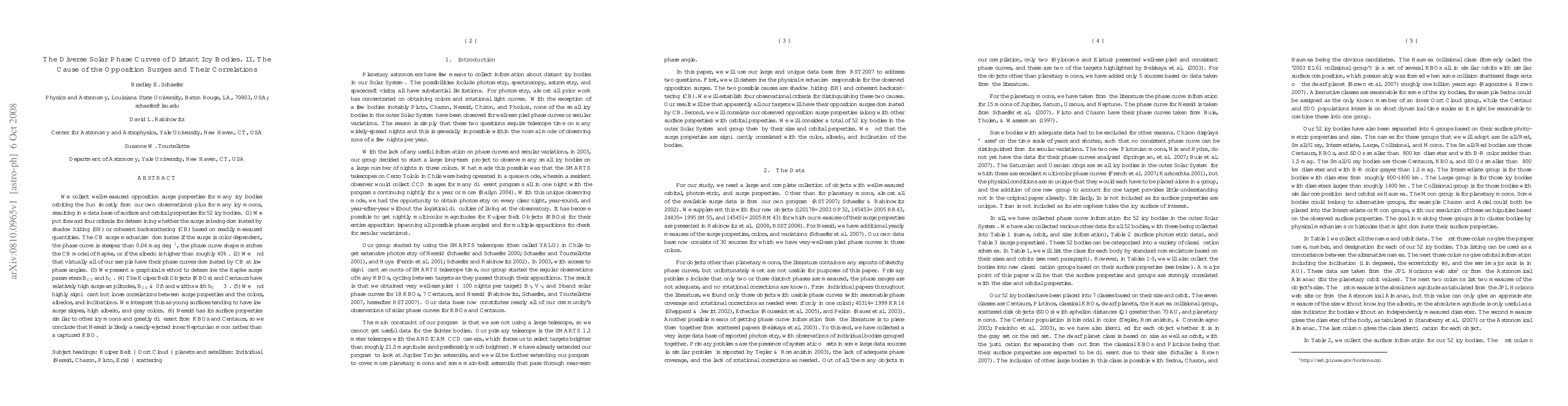 We collect well-measured opposition surge properties for many icy bodies orbiting the Sun (mostly from our own observations) plus for many icy moons, resulting in a data base of surface and orbital properties for 52 icy bodies. (1) We put forward four criteria for determining whether the surge is being dominated by shadow hiding (SH) or coherent backscattering (CB) based on readily measured quantities. The CB surge mechanism dominates if the surge is color dependent, the phase curve is steeper than 0.04 mag/deg, the phase curve shape matches the CB model of Hapke, or if the albedo is higher than roughly 40%. (2) We find that virtually all of our sample have their phase curves dominated by CB at low phase angles. (3) We present a graphical method to determine the Hapke surge parameters B_C0 and h_C. (4) The Kuiper Belt Objects (KBOs) and Centaurs have relatively high surge amplitudes, B_C0 > ~0.5 and widths with h_C ~ 3 deg. (5) We find highly significant but loose correlations between surge properties and the colors, albedos, and inclinations. We interpret this as young surfaces tending to have low surge slopes, high albedo, and gray colors. (6) Nereid has its surface properties similar to other icy moons and greatly different from KBOs and Centaurs, so we conclude that Nereid is likely a nearly-ejected inner Neptunian moon rather than a captured KBO.