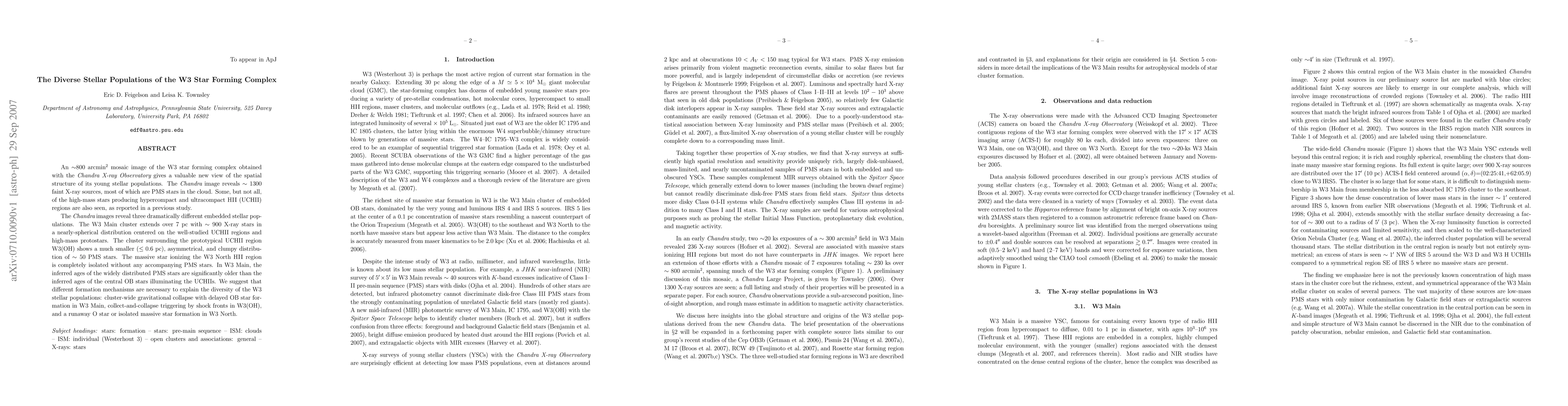 The Chandra X-ray Observatory image of the W3 star forming complex reveals three distinct embedded stellar populations, suggesting varied formation mechanisms: cluster-wide gravitational collapse in W3 Main, shock-front triggering in W3(OH), and runaway or isolated massive star formation in W3 North.