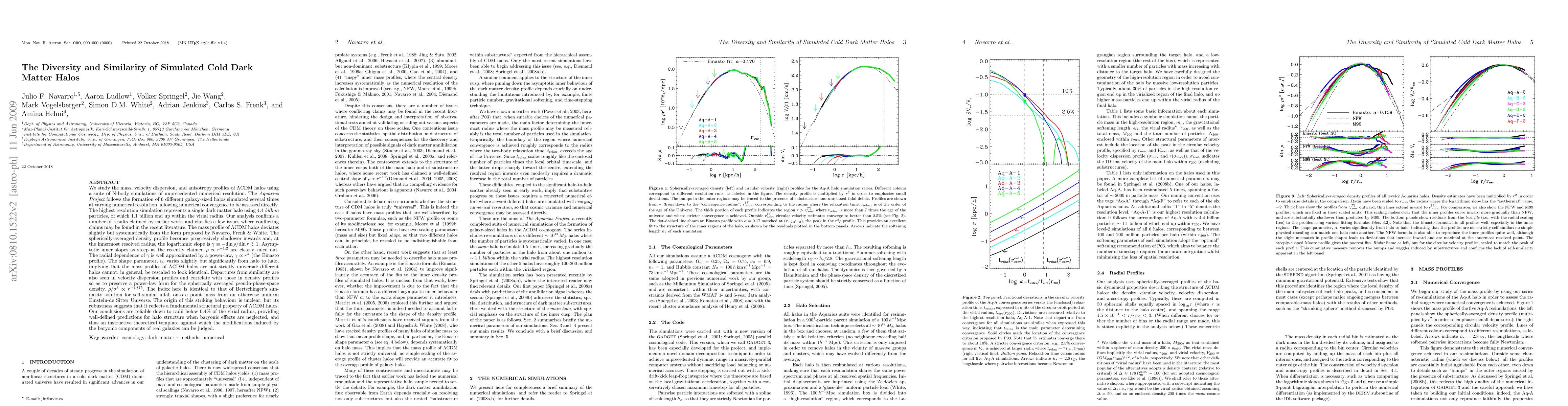 We study the mass, velocity dispersion, and anisotropy profiles of $\Lambda$CDM halos using a suite of N-body simulations of unprecedented numerical resolution (the {\it Aquarius Project}). Our analysis confirms a number of results claimed by earlier work, and clarifies a few issues where conflicting claims may be found in the recent literature. The spherically-averaged density profile becomes progressively shallower inwards and, at the innermost resolved radius, the logarithmic slope is $\gamma \equiv -$d$\ln\rho/$d$\ln r \simlt 1$. Asymptotic inner slopes as steep as the recently claimed $\rho \propto r^{-1.2}$ are clearly ruled out. The radial dependence of $\gamma$ is well approximated by a power-law, $\gamma \propto r^{\alpha}$ (the Einasto profile). The shape parameter, $\alpha$, varies slightly but significantly from halo to halo, implying that the mass profiles of $\Lambda$CDM halos are not strictly universal: different halos cannot, in general, be rescaled to look identical. Departures from similarity are also seen in velocity dispersion profiles and correlate with those in density profiles so as to preserve a power-law form for the spherically averaged pseudo-phase-space density, $\rho/\sigma^3\propto r^{-1.875}$. Our conclusions are reliable down to radii below 0.4% of the virial radius, providing well-defined predictions for halo structure when baryonic effects are neglected, and thus an instructive theoretical template against which the modifications induced by the baryonic components of real galaxies can be judged.