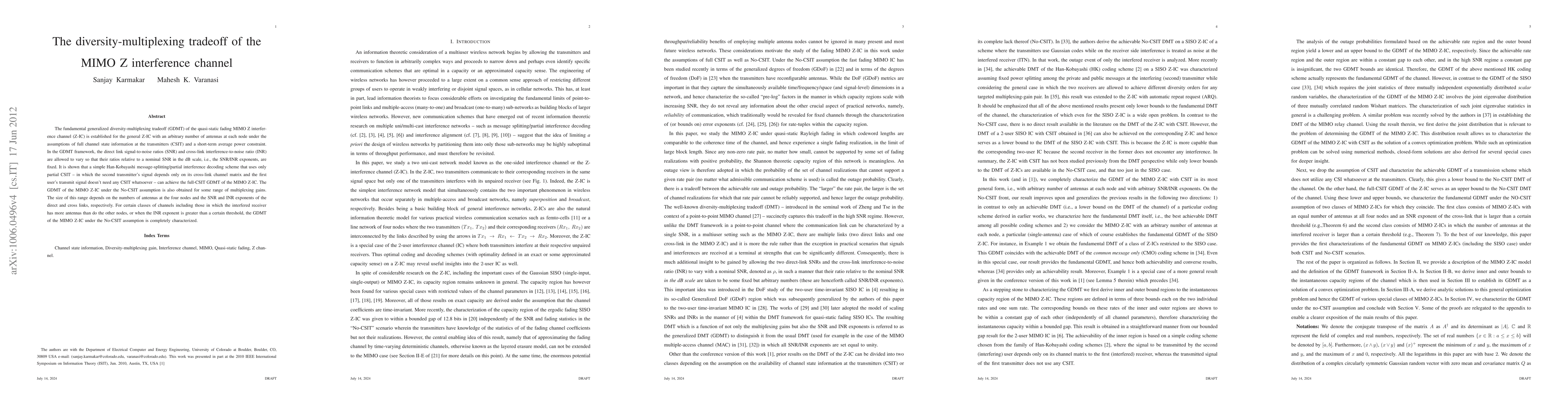 The fundamental generalized diversity-multiplexing tradeoff (GDMT) of the quasi-static fading MIMO Z interference channel (Z-IC) is established for the general Z-IC with an arbitrary number of antennas at each node under the assumptions of full channel state information at the transmitters (CSIT) and a short-term average power constraint. In the GDMT framework, the direct link signal-to-noise ratios (SNR) and cross-link interference-to-noise ratio (INR) are allowed to vary so that their ratios relative to a nominal SNR in the dB scale, i.e., the SNR/INR exponents, are fixed. It is shown that a simple Han-Kobayashi message-splitting/partial interference decoding scheme that uses only partial CSIT -- in which the second transmitter's signal depends only on its cross-link channel matrix and the first user's transmit signal doesn't need any CSIT whatsoever -- can achieve the full-CSIT GDMT of the MIMO Z-IC. The GDMT of the MIMO Z-IC under the No-CSIT assumption is also obtained for some range of multiplexing gains. The size of this range depends on the numbers of antennas at the four nodes and the SNR and INR exponents of the direct and cross links, respectively. For certain classes of channels including those in which the interfered receiver has more antennas than do the other nodes, or when the INR exponent is greater than a certain threshold, the GDMT of the MIMO Z-IC under the No-CSIT assumption is completely characterized.