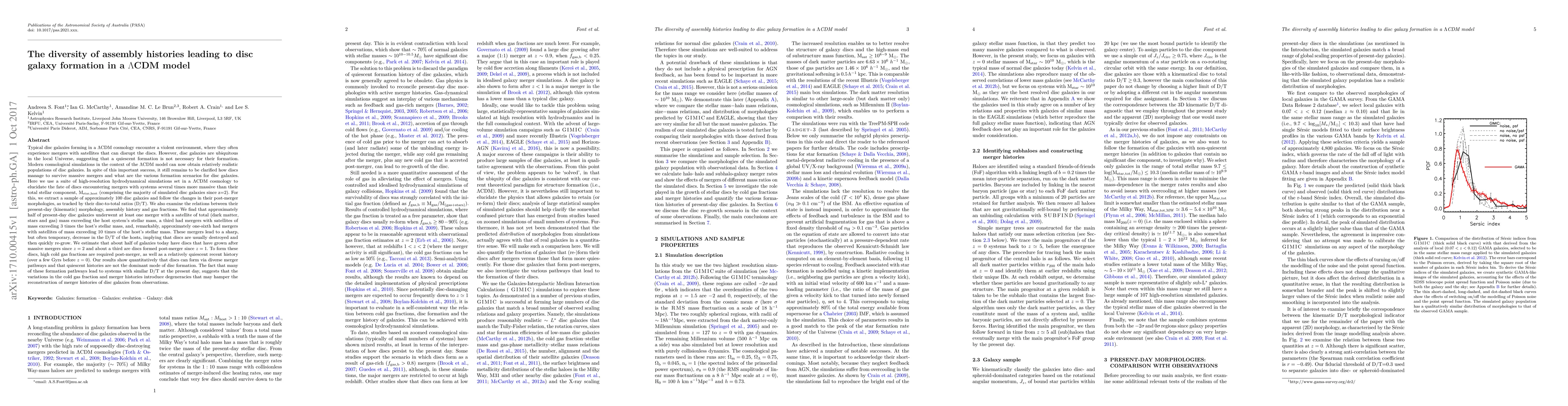 [Abridged] Typical disc galaxies forming in a LambdaCDM cosmology encounter a violent environment, where they often experience mergers with massive satellites. The fact that disc galaxies are ubiquitous in the local Universe suggests that a quiescent history is not necessary for their formation. Modern cosmological simulations can now obtain relatively realistic populations of disc galaxies, but it still remains to be clarified how discs manage to survive massive mergers. Here we use a suite of high-resolution hydrodynamical simulations set in a LambdaCDM cosmology to elucidate the fate of discs encountering massive mergers. We extract a sample of approximately 100 disc galaxies and follow the changes in their post-merger morphologies, as tracked by their disc-to-total ratios (D/T). We also examine the relations between their present-day morphology, assembly history and gas fractions. We find that approximately half of present-day disc galaxies underwent at least one merger with a satellite of total mass exceeding the host system's stellar mass, a third had mergers with satellites of mass exceeding 3 times the host's stellar mass, and approximately one-sixth had mergers with satellites of mass exceeding 10 times of the host's stellar mass. These mergers lead to a sharp, but often temporary, decrease in the D/T of the hosts, implying that discs are usually disrupted but then quickly re-grow. To do so, high cold gas fractions are required post-merger, as well as a relatively quiescent recent history (over a few Gyrs before z=0). Our results show that discs can form via diverse merger pathways and that quiescent histories are not the dominant mode of disc formation.