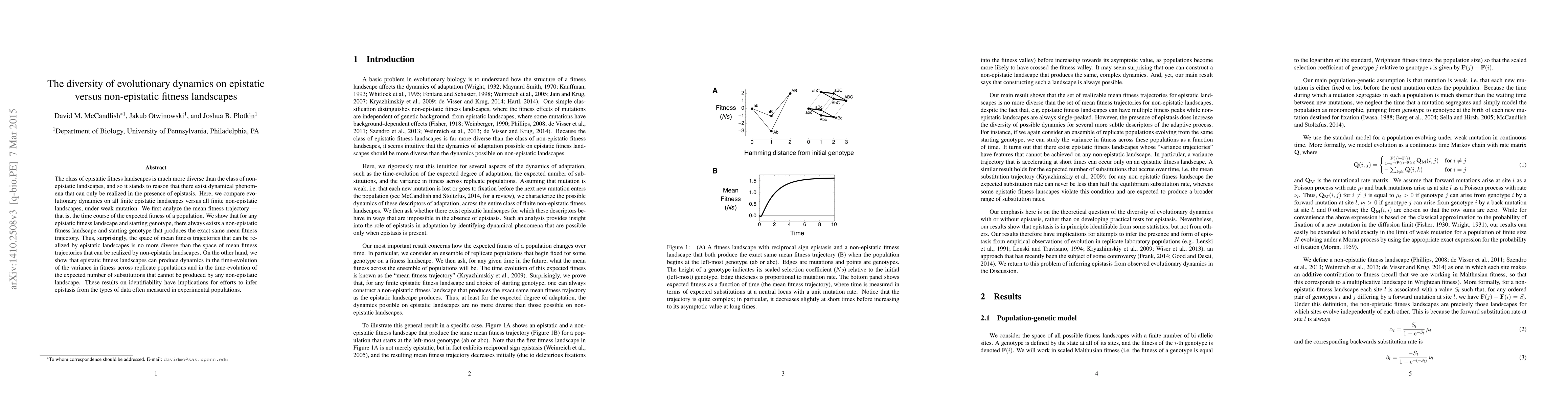 The paper provides a detailed analytical comparison of evolutionary dynamics on epistatic versus non-epistatic fitness landscapes, identifying unique dynamical phenomena possible only with epistasis.