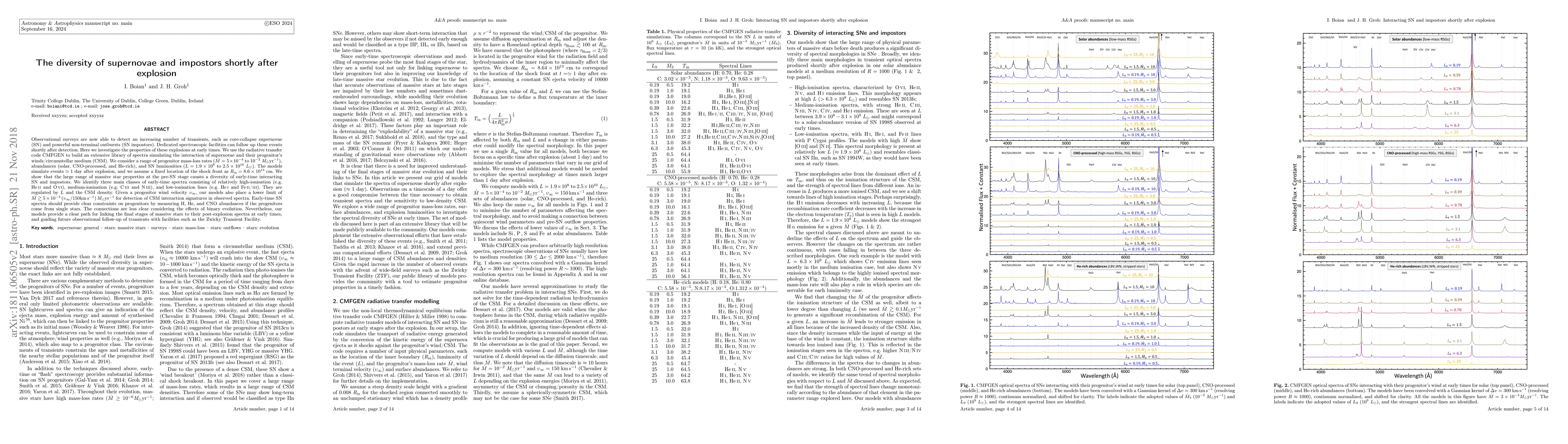 This paper investigates the diversity of early-time spectra of supernovae and supernova impostors using radiative transfer simulations. It identifies three main spectral classes based on ionization levels, influenced by luminosity and circumstellar medium density, and suggests a minimum mass-loss rate for detecting CSM interaction signatures.