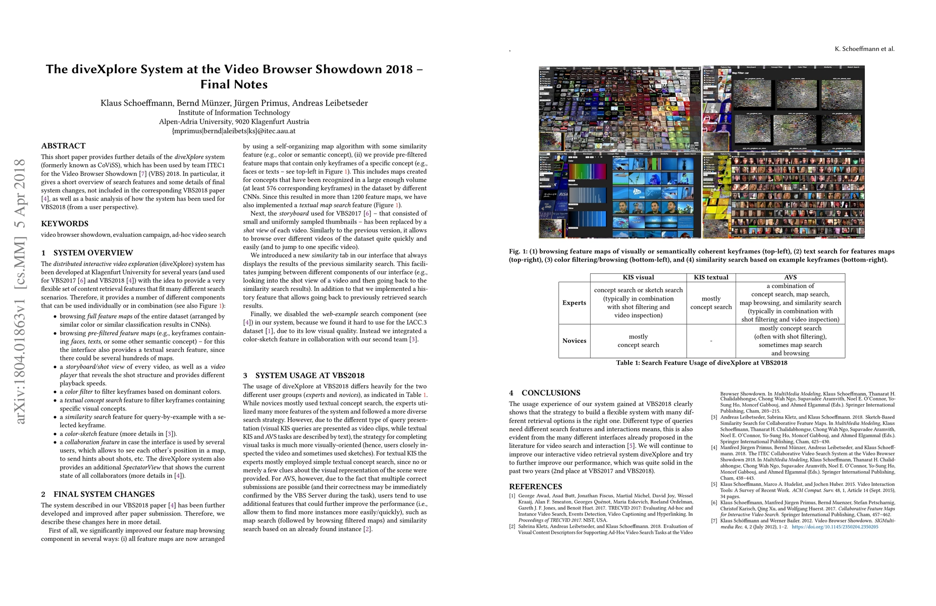 This short paper provides further details of the diveXplore system (formerly known as CoViSS), which has been used by team ITEC1 for the Video Browser Showdown (VBS) 2018. In particular, it gives a short overview of search features and some details of final system changes, not included in the corresponding VBS2018 paper, as well as a basic analysis of how the system has been used for VBS2018 (from a user perspective).