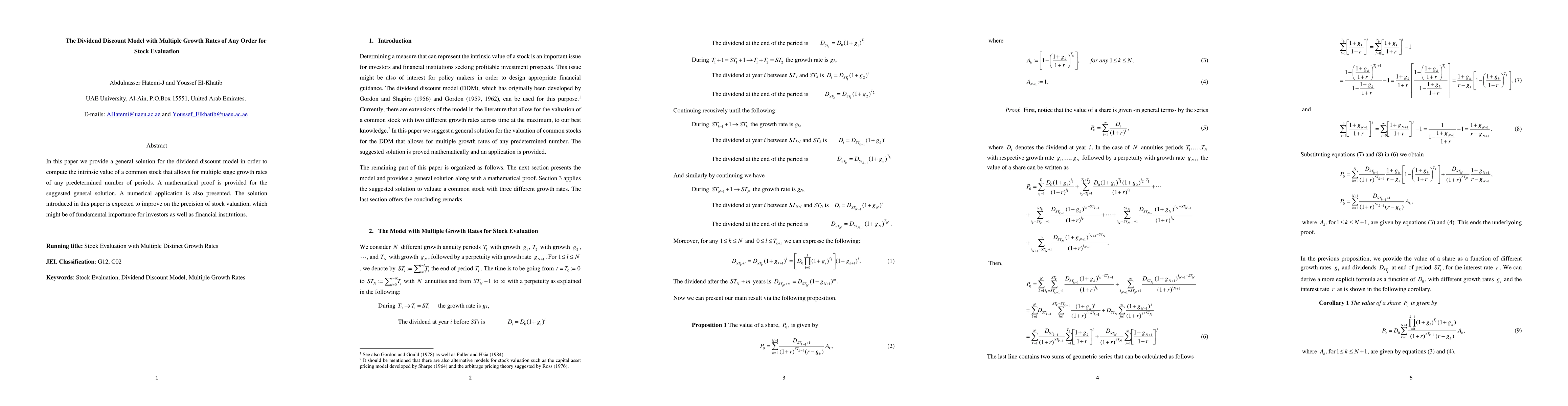 The main technical contribution of this research is the development of a new framework for the dividend discount model that allows for multiple growth rates.