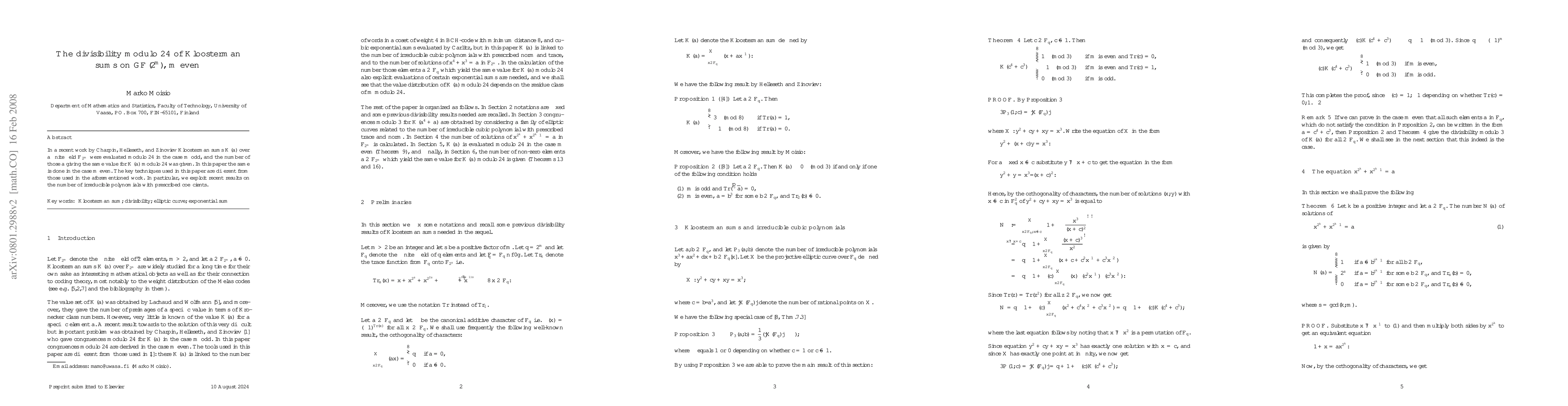 Researchers investigate Kloosterman sums on finite fields with an even number of elements, finding new techniques to analyze the divisibility modulo 24. The study builds upon previous work and contributes to a deeper understanding of these mathematical concepts.