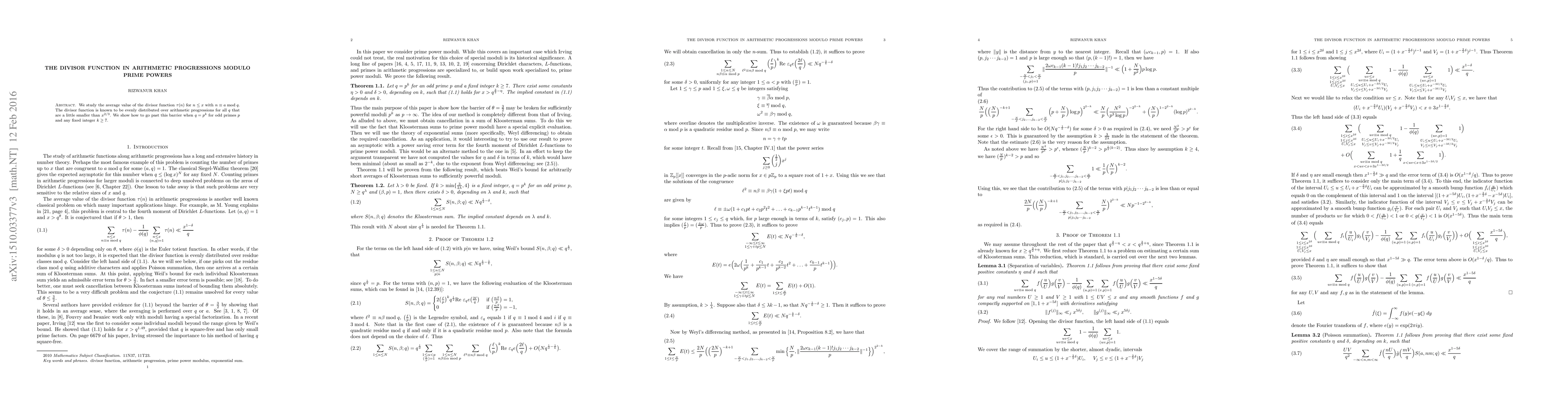 This paper investigates the average value of the divisor function $\tau(n)$ for $n \equiv a \bmod q$ with $n \leq x$, showing that it is evenly distributed for $q < x^{2/3}$. It extends this result to $q = p^k$ for odd primes $p$ and any fixed integer $k \geq 7$.
