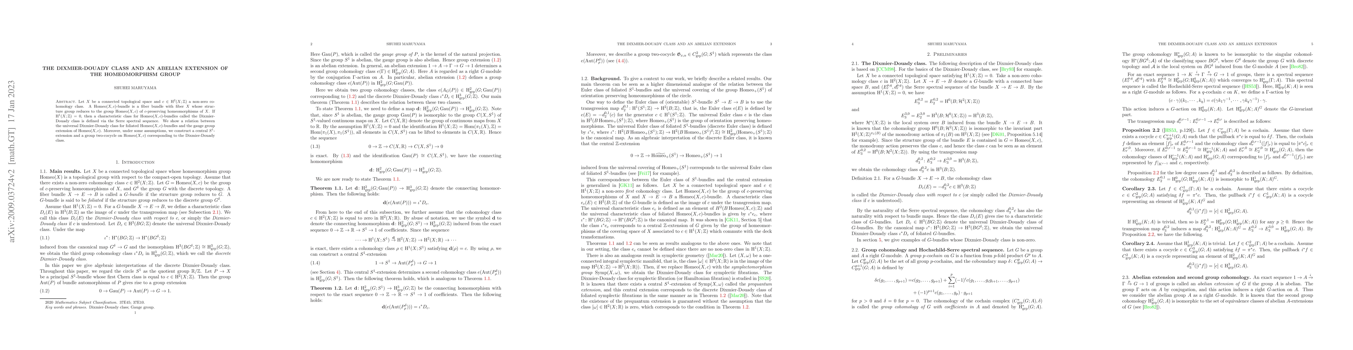 The work combines concepts from algebraic topology, specifically spectral sequences, with geometric group theory to reveal new connections between the Dixmier-Douady class and abelian extensions of homeomorphism groups, offering fresh perspectives in the study of topological spaces.