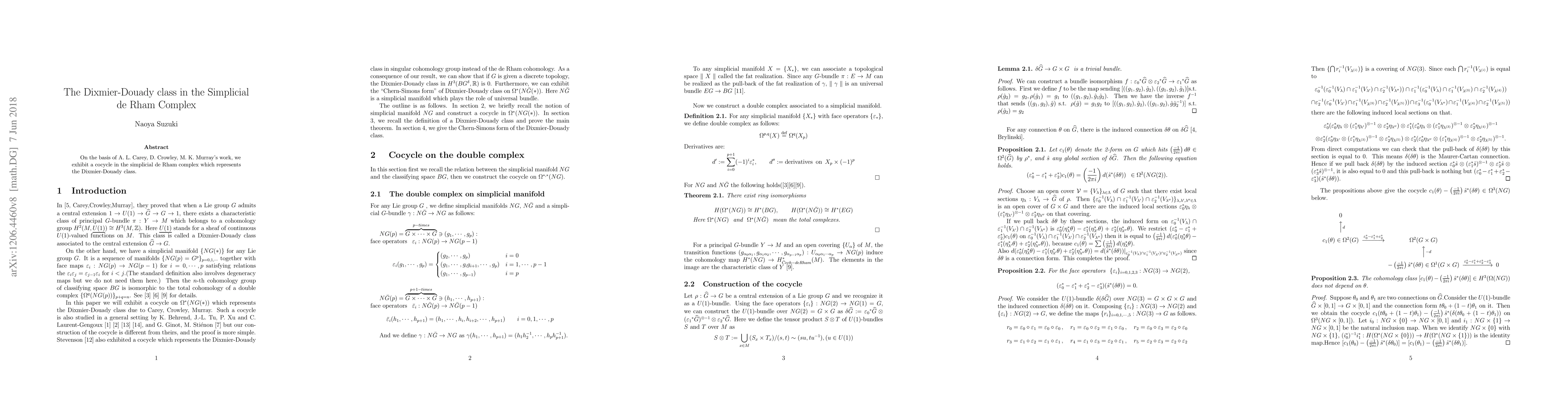 The paper introduces a simplicial Dixmier-Douady cocycle and establishes its relation to the first Chern class via a Chern-Simons form, providing a geometric interpretation of the Dixmier-Douady class in the simplicial de Rham complex.