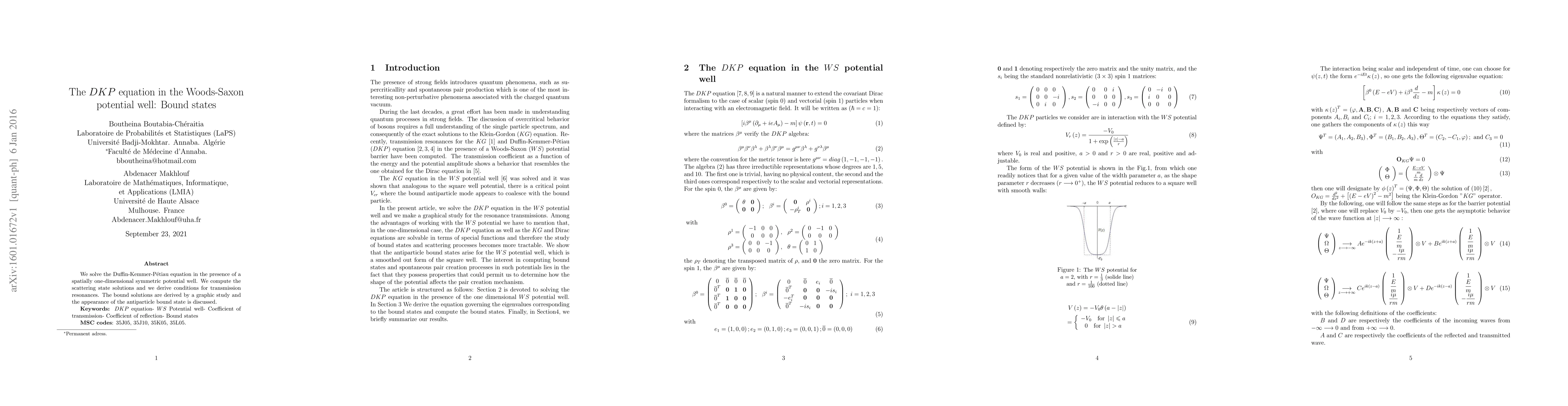Summary: This paper solves the Duffin-Kemmer-Pétrau equation within a one-dimensional symmetric potential well, deriving scattering state solutions and transmission resonance conditions. Bound state solutions, including the emergence of an antiparticle bound state, are analyzed through graphical methods.