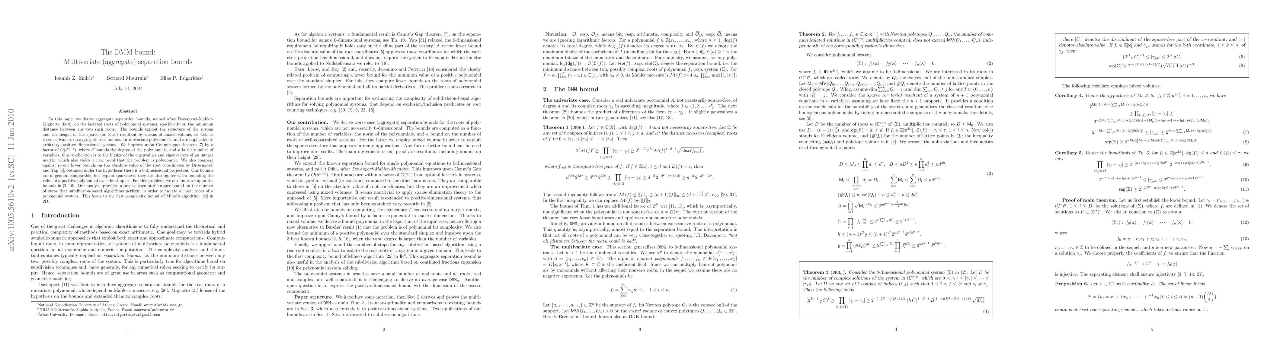 In this paper we derive aggregate separation bounds, named after Davenport-Mahler-Mignotte (\dmm), on the isolated roots of polynomial systems, specifically on the minimum distance between any two such roots. The bounds exploit the structure of the system and the height of the sparse (or toric) resultant by means of mixed volume, as well as recent advances on aggregate root bounds for univariate polynomials, and are applicable to arbitrary positive dimensional systems. We improve upon Canny's gap theorem \cite{c-crmp-87} by a factor of $\OO(d^{n-1})$, where $d$ bounds the degree of the polynomials, and $n$ is the number of variables. One application is to the bitsize of the eigenvalues and eigenvectors of an integer matrix, which also yields a new proof that the problem is polynomial. We also compare against recent lower bounds on the absolute value of the root coordinates by Brownawell and Yap \cite{by-issac-2009}, obtained under the hypothesis there is a 0-dimensional projection. Our bounds are in general comparable, but exploit sparseness; they are also tighter when bounding the value of a positive polynomial over the simplex. For this problem, we also improve upon the bounds in \cite{bsr-arxix-2009,jp-arxiv-2009}. Our analysis provides a precise asymptotic upper bound on the number of steps that subdivision-based algorithms perform in order to isolate all real roots of a polynomial system. This leads to the first complexity bound of Milne's algorithm \cite{Miln92} in 2D.