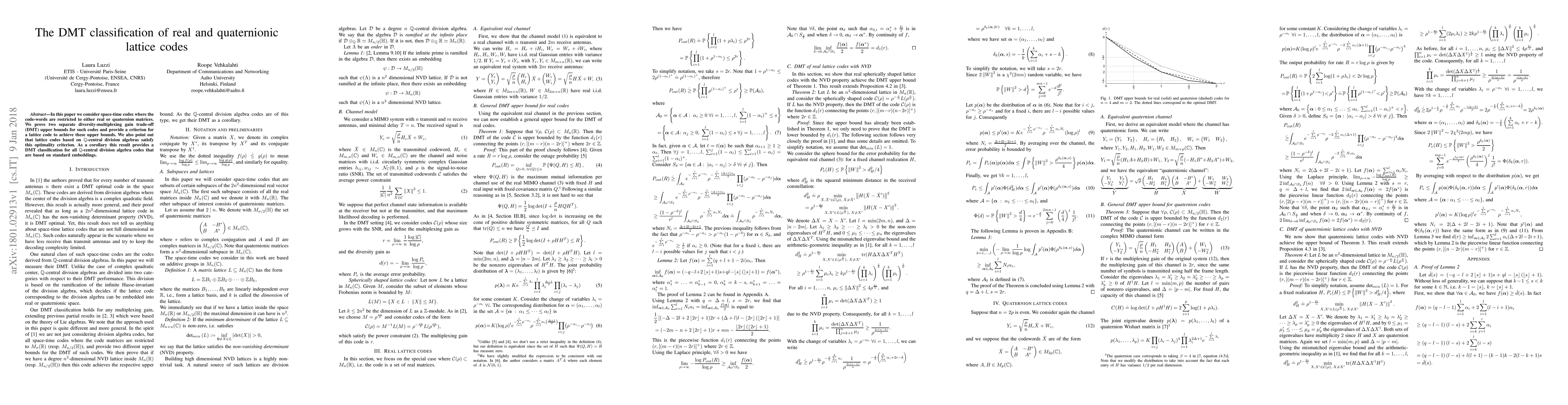 This paper establishes diversity-multiplexing gain trade-off (DMT) upper bounds for real and quaternionic lattice codes, providing a criterion for achieving these bounds and demonstrating that lattice codes based on Q-central division algebras meet this optimality criterion. The findings classify all Q-central division algebra codes based on standard embeddings.