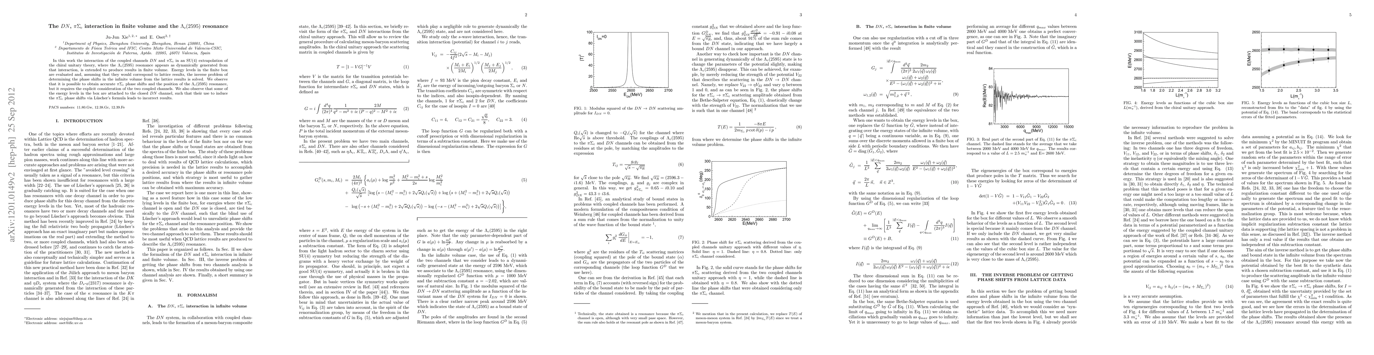 In this work the interaction of the coupled channels $DN$ and $\pi \Sigma_c$ in an SU(4) extrapolation of the chiral unitary theory, where the $\Lambda_c(2595)$ resonance appears as dynamically generated from that interaction, is extended to produce results in finite volume. Energy levels in the finite box are evaluated and, assuming that they would correspond to lattice results, the inverse problem of determining the phase shifts in the infinite volume from the lattice results is solved. We observe that it is possible to obtain accurate $\pi \Sigma_c$ phase shifts and the position of the $\Lambda_c(2595)$ resonance, but it requires the explicit consideration of the two coupled channels. We also observe that some of the energy levels in the box are attached to the closed $DN$ channel, such that their use to induce the $\pi \Sigma_c$ phase shifts via L\"uscher's formula leads to incorrect results.