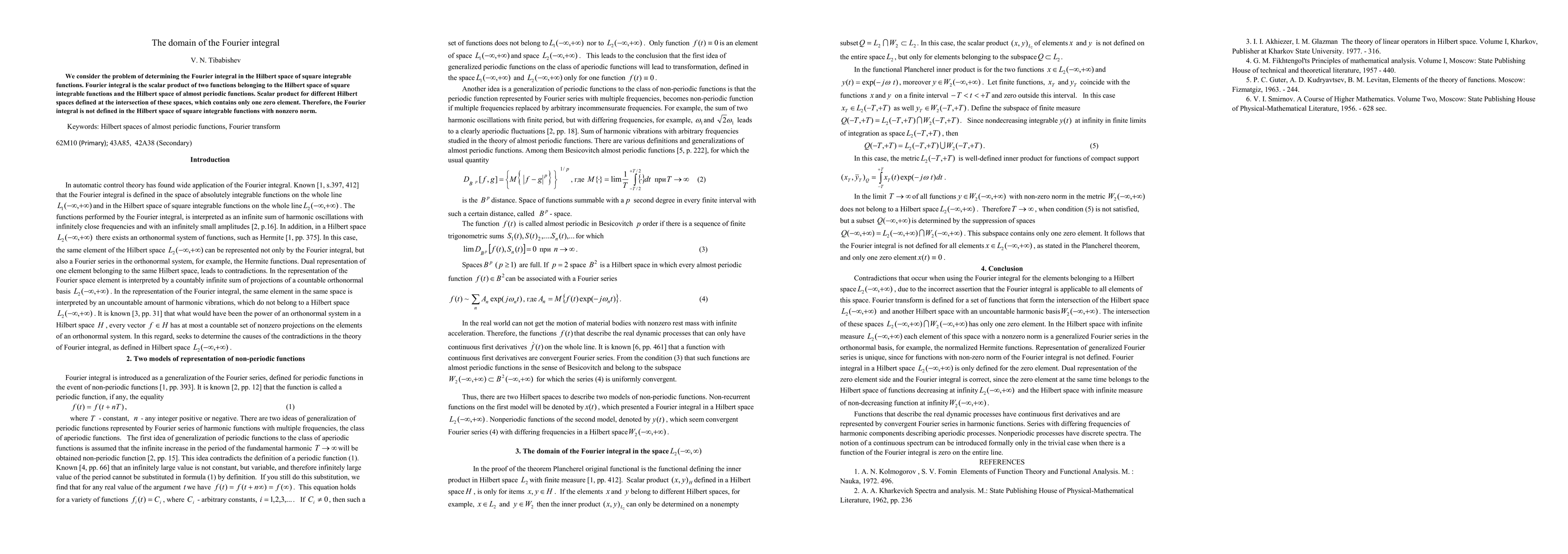 We consider the problem of determining the Fourier integral in the Hilbert space of square integrable functions. Fourier integral is the scalar product of two functions belonging to the Hilbert space of square integrable functions and the Hilbert space of almost periodic functions. Scalar product for different Hilbert spaces defined at the intersection of these spaces, which contains only one zero element. Therefore, the Fourier integral is not defined in the Hilbert space of square integrable functions with nonzero norm.