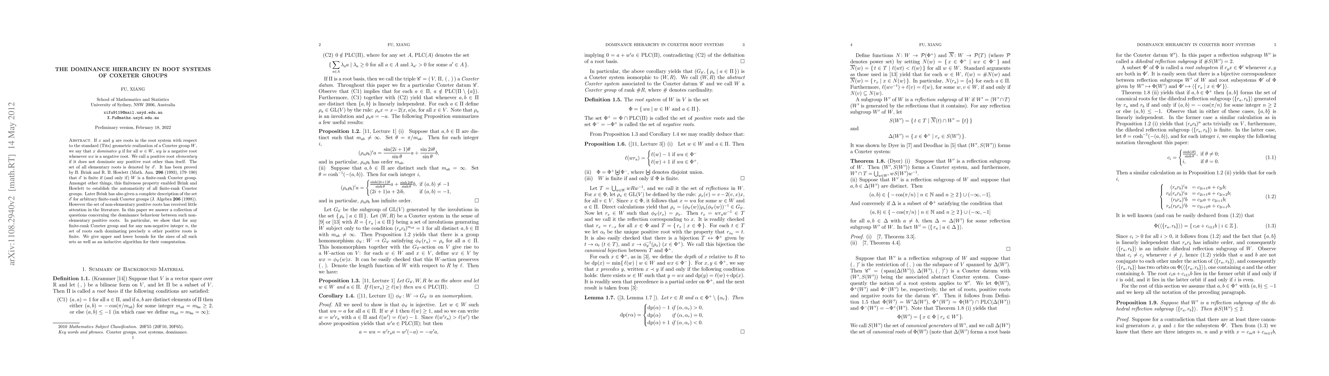 This paper explores the dominance hierarchy in root systems of Coxeter groups, focusing on non-elementary positive roots. It proves that for any finite-rank Coxeter group, the set of roots dominating exactly $n$ other positive roots is finite, providing both upper and lower bounds for these sets and an inductive algorithm for their computation.