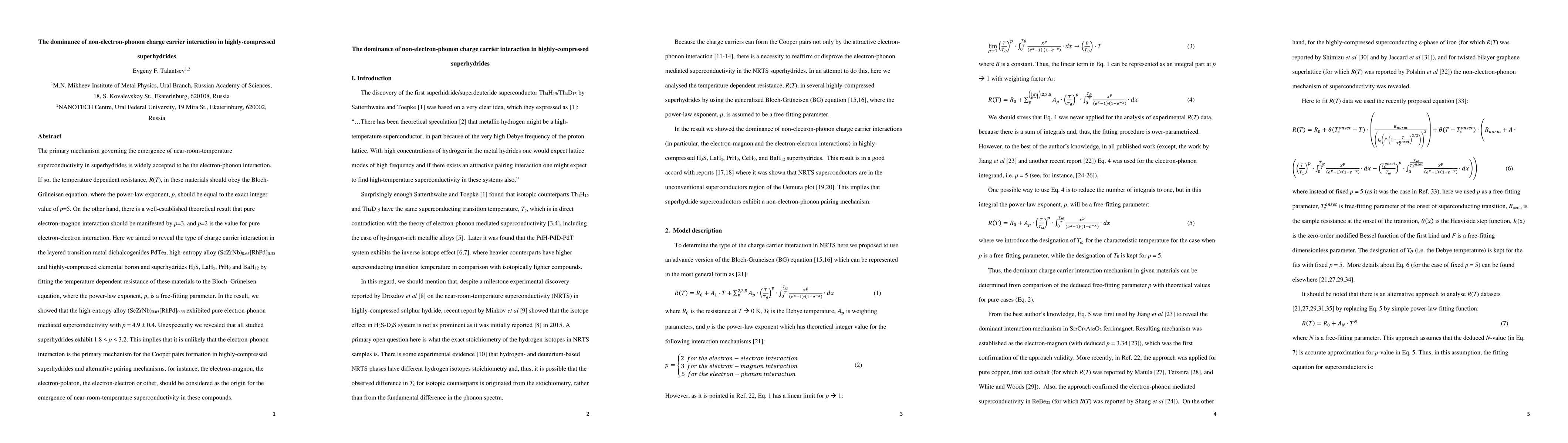 The primary mechanism governing the emergence of near-room-temperature superconductivity in superhydrides is widely accepted to be the electron-phonon interaction. If so, the temperature dependent resistance, R(T), in these materials should obey the Bloch-Gr\"uneisen equation, where the power-law exponent, p, should be equal to the exact integer value of p=5. On the other hand, there is a well-established theoretical result that pure electron-magnon interaction should be manifested by p=3, and p=2 is the value for pure electron-electron interaction. Here we aimed to reveal the type of charge carrier interaction in the layered transition metal dichalcogenides PdTe2, high-entropy alloy (ScZrNb)0.65[RhPd]0.35, and highly-compressed elemental boron and superhydrides H3S, LaHx, PrH9 and BaH12 by fitting the temperature dependent resistance of these materials to the Bloch-Gr\"uneisen equation where the power-law exponent, p, is a free-fitting parameter. In the result, we showed that the high-entropy alloy (ScZrNb)0.65[RhPd]0.35 exhibited pure electron-phonon mediated superconductivity with p = 4.9. Unexpectedly we revealed that all studied superhydrides exhibit 1.8 < p < 3.2. This implies that it is unlikely that the electron-phonon interaction is the primary mechanism for the Cooper pairs formation in highly-compressed superhydrides and alternative pairing mechanisms, for instance, the electron-magnon, the electron-polaron, the electron-electron or other, should be considered as the origin for the emergence of near-room-temperature superconductivity in these compounds.
